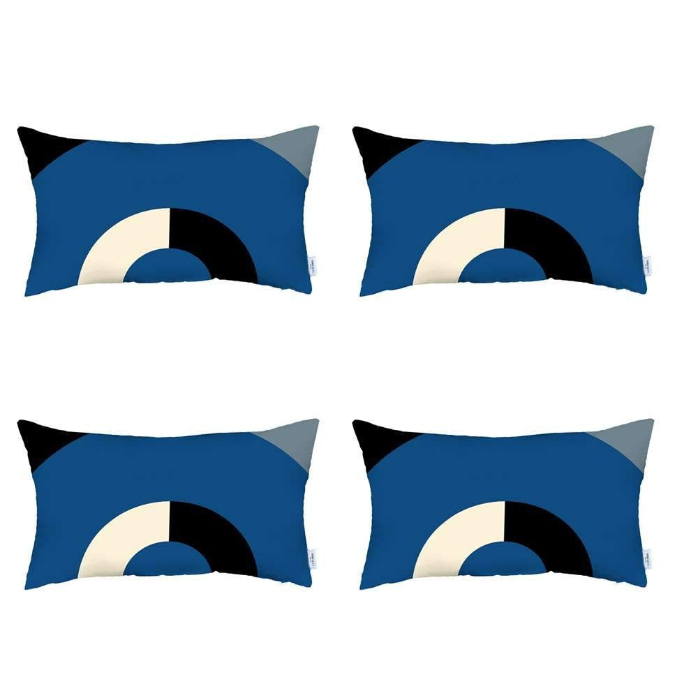 Set Of Four 20" X 12" Blue White Black And Gray Polyester Abstract Zippered Pillow