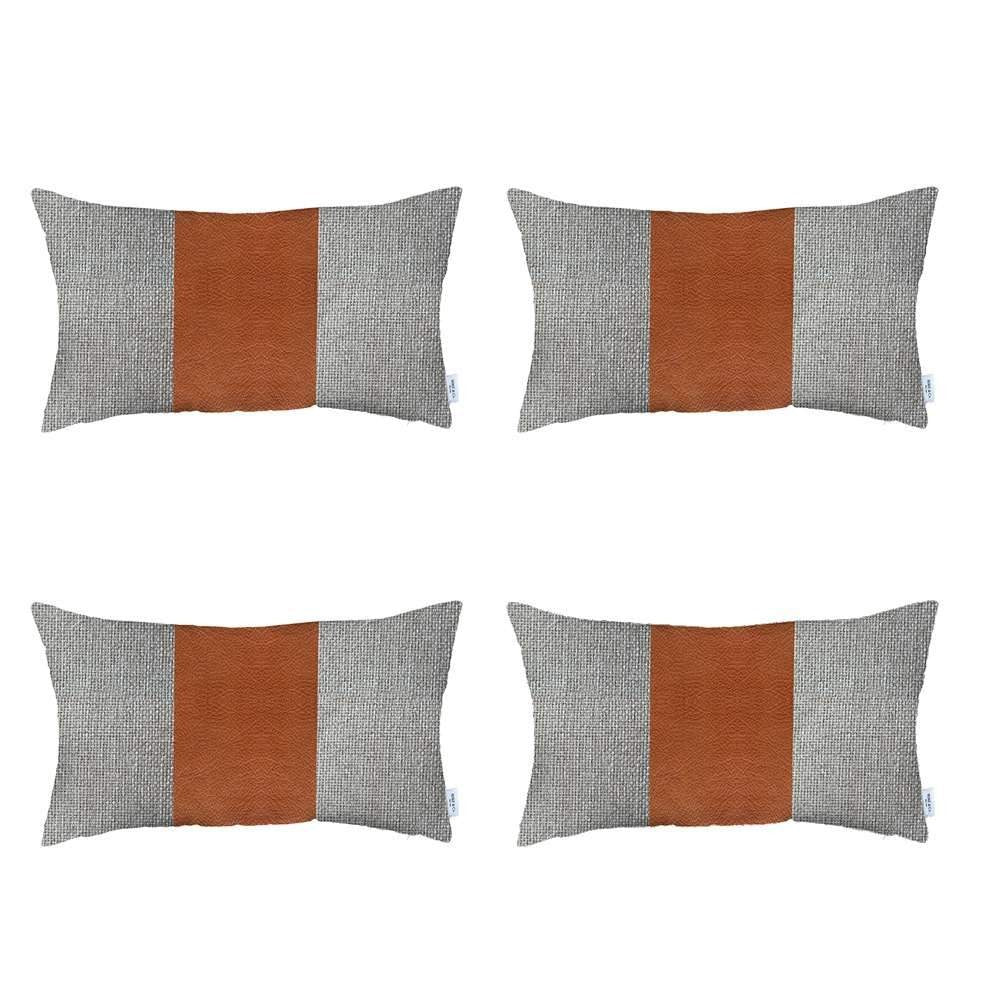 Set Of Four 20" X 12" Grey And Brown Polyester Geometric Zippered Pillow