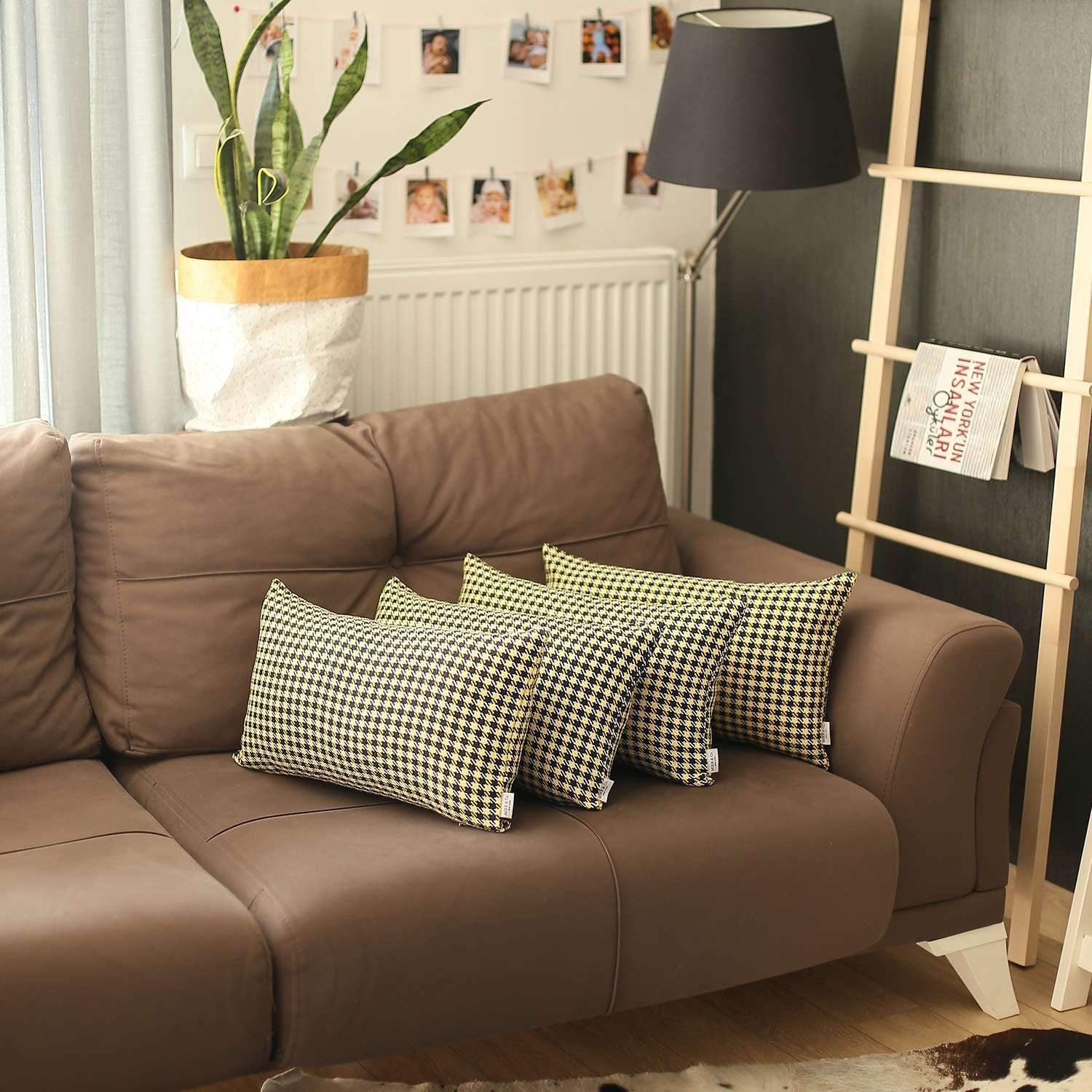 Add an air of fashion to your room and rejuvenate the space with this cute and fashionable set of four 20" x 12" yellow polyester houndstooth zippered pillow. This yellow colored decorative pillow set is made from high grade polyester that is durable and soft to the touch. Decorative throw pillows not only add color and dimension to your space but can be comfy and supportive when you are lounging and cuddling as well. Decorative pillows are a great way to change up the look and feel of your space easily and quickly. 6.4" H x 20" W x 12" D