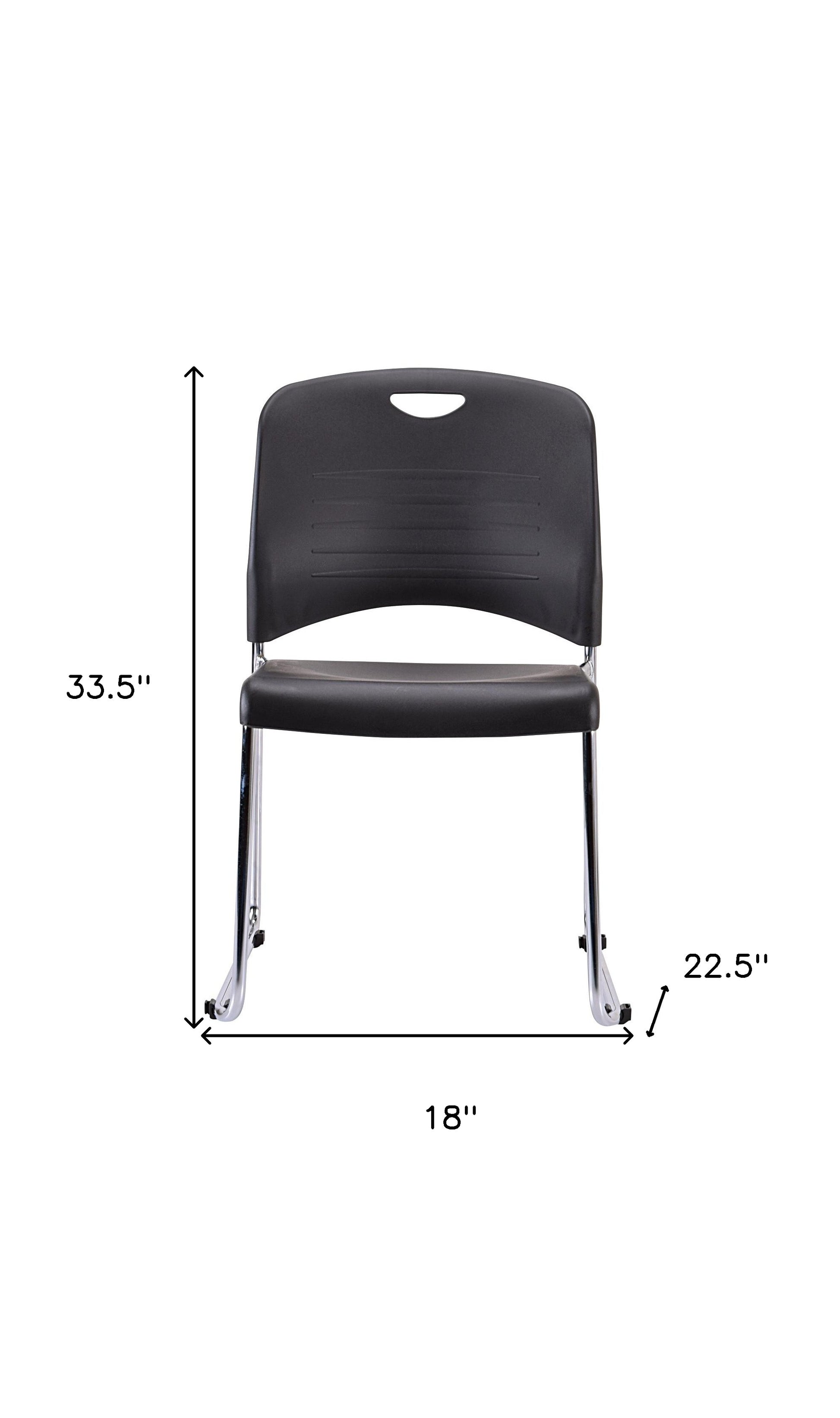 The molded industrial grade silver plastic is durable, strong, and resists moisture, making this office chair type=>task chair an ideal addition to your office or home office. With a weight capacity of 275 pounds, it is suitable for a wide range of users. The black back and seat color complement the silver frame color, giving it a contemporary and stylish look. The plastic/acrylic back material and upholstery provide added comfort, while the stackable design allows for easy storage when not in use. This set includes four chairs, making it perfect for conference rooms or collaborative workspaces. 33.5-inch H x 18-inch W x 22.5-inch D