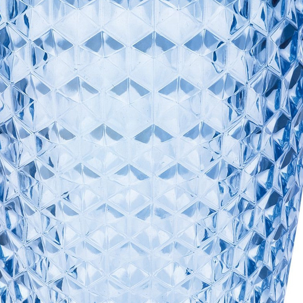 Enjoy your favorite whiskey to the fullest with this top shelf set of four blue diamond acrylic stemless whiskey glass. Whether you are entertaining or simply enjoying a drink by yourself, a quality set of stemware is a must-have. Includes a decorative clear rim to enhance the look and elegance of the glass. Beautifully machine embossed to give your glassware a bit of design, character, and dimension. Bring a pop of personality to your kitchen or dining room with this diamond pattern. The textured surface gives this a unique and dimensional feel. Sipping from the right glass can make the difference between a drink and an amazing experience. 4.25-inch H x 3.38-inch W x 3.38-inch D