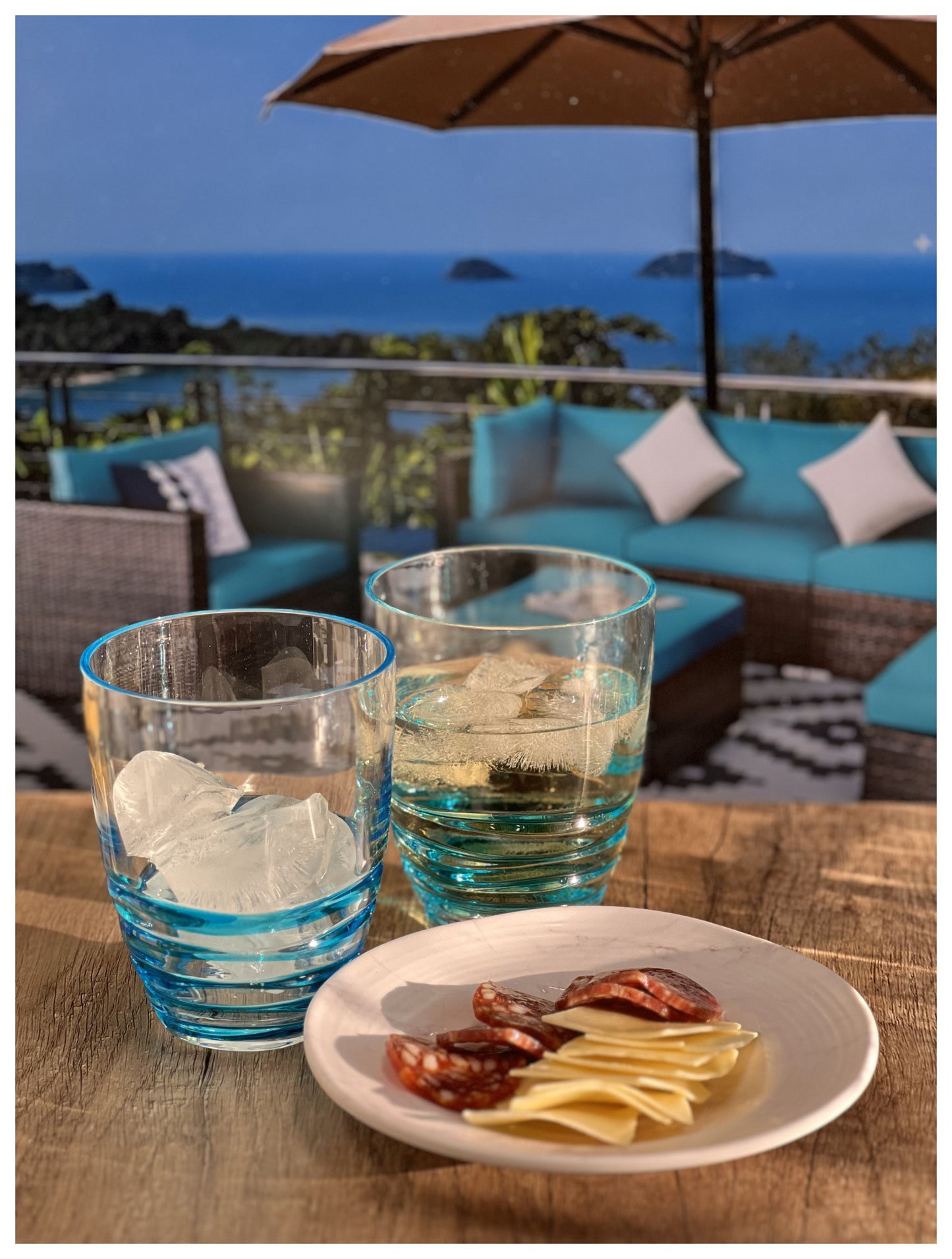 Set of Four Clear and Blue Acrylic Stemless Whiskey Glasses