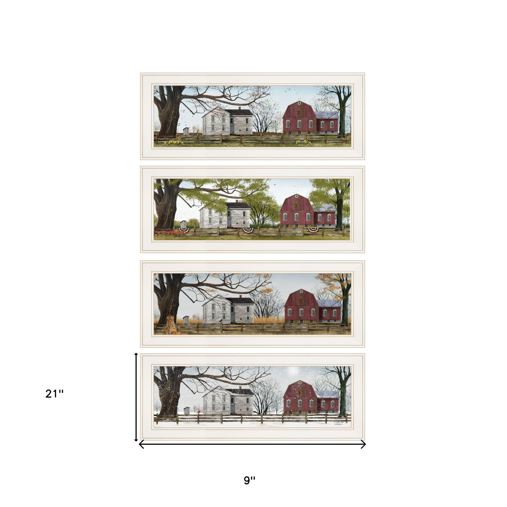 The set of four four seasons collection ii 1 white framed print wall art is the perfect decorative accessory for your home. This print is a visual artistic expression that allows you to decorate your space in style. Reproduced for you on paper, this hanging decorative accent will be a trendy and fashionable way to dress your walls. Hang on your wall to add some up to date fashion and decoration. Instantly liven up your space with this art that brings color and dimension to your walls. 9 inches H x 21 inches W x 1 inches D