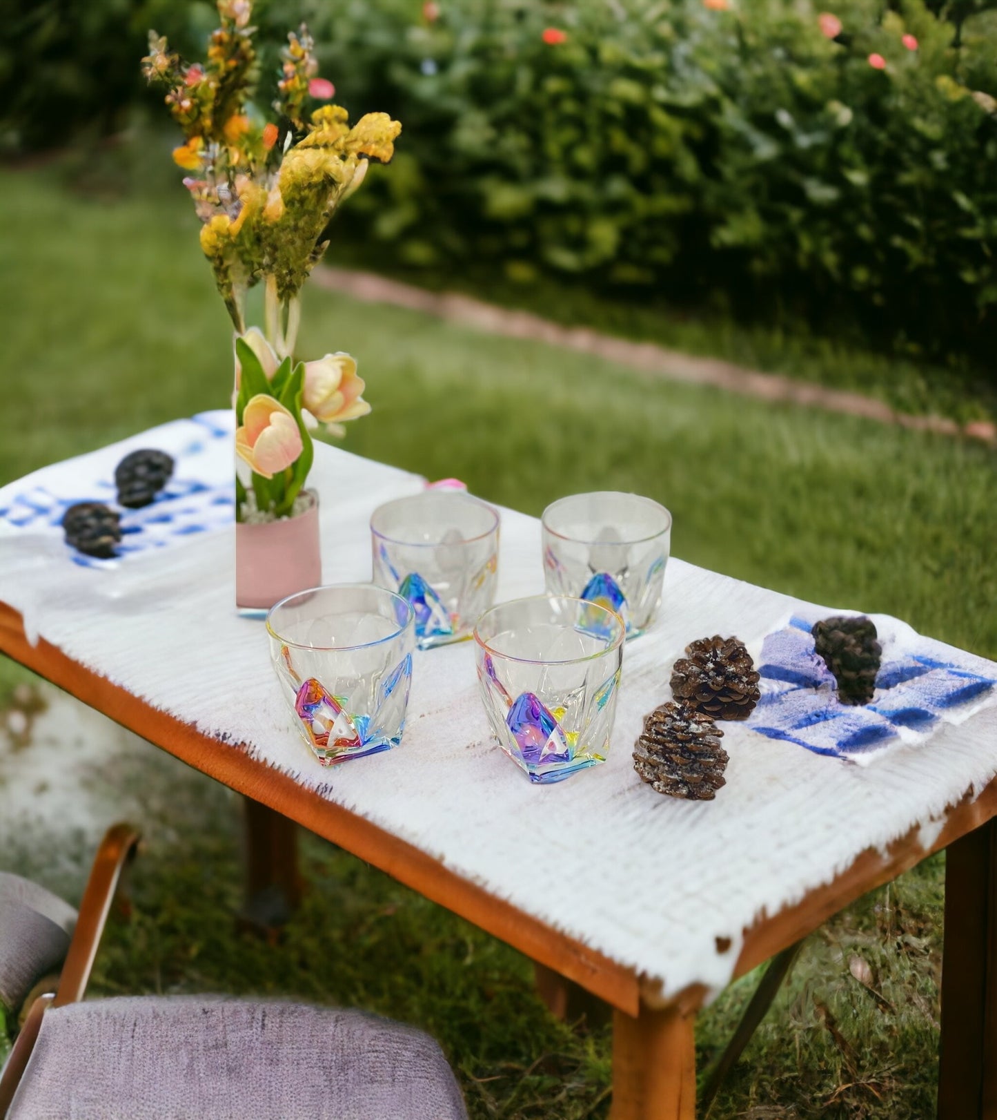 Set of Four Rainbow Geometric Acrylic Stemless Whiskey Glass