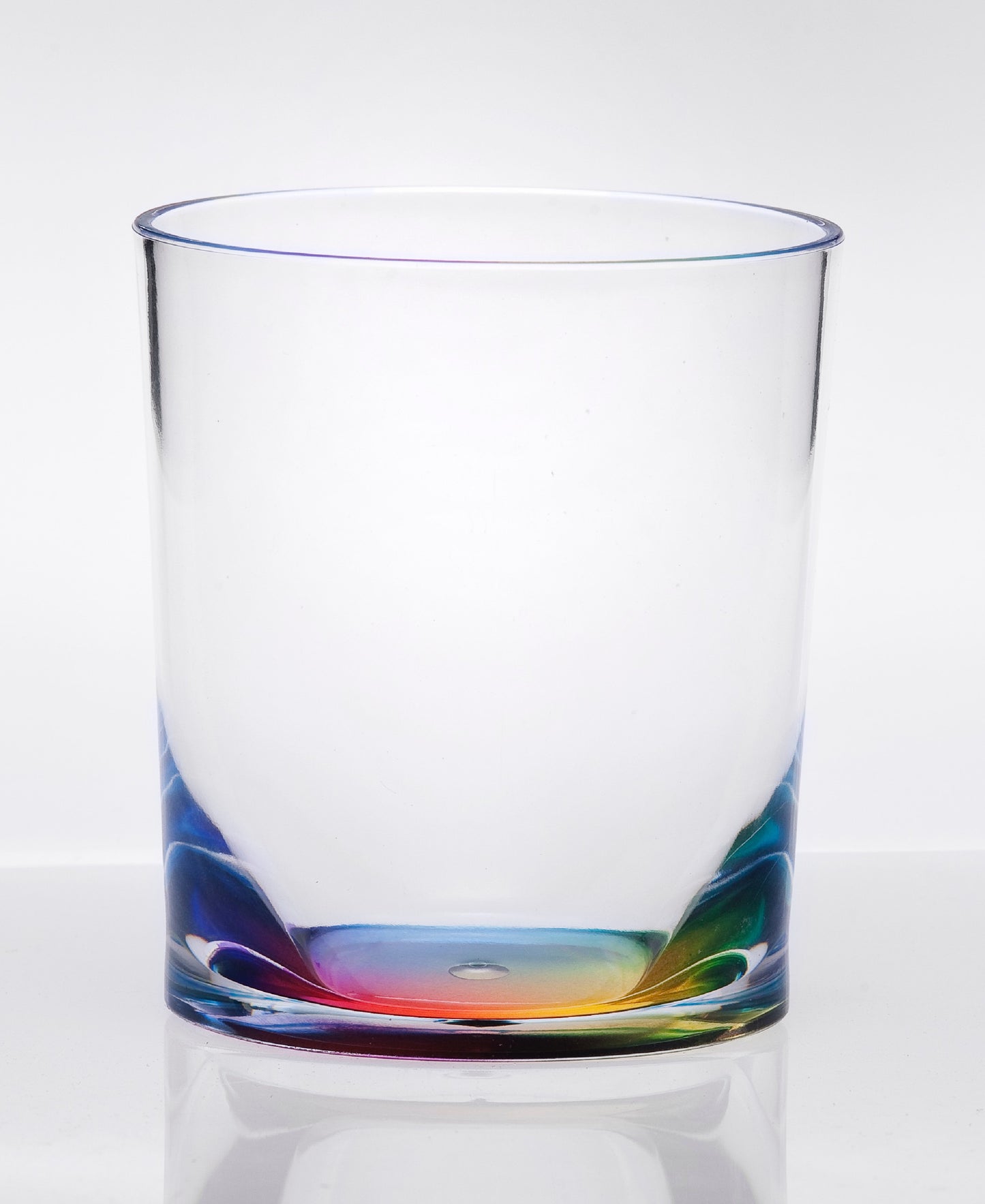 Enjoy your favorite whiskey to the fullest with this top shelf set of four rainbow geometric acrylic stemless whiskey glass. Elevate any occasion with a set of stunning stemware that is as functional as it is beautiful. Add an air of casual elegance with the fresh and modern design of a stemless glass. Includes a decorative clear rim to enhance the look and elegance of the glass. Beautifully machine embossed to give your glassware a bit of design, character, and dimension. Bring a pop of personality to your kitchen or dining room with this geometric pattern. The texture on this surface not only looks great but feels cool in your hand. Every drink deserves the perfect glass, and so do you. 3.93-inch H x 3.5-inch W x 3.5-inch D