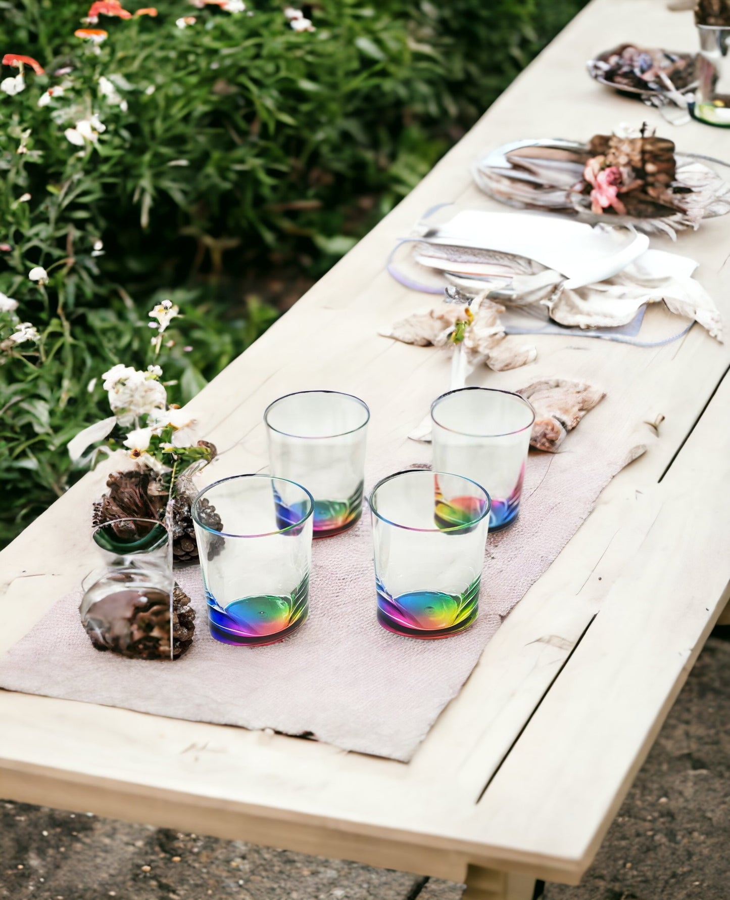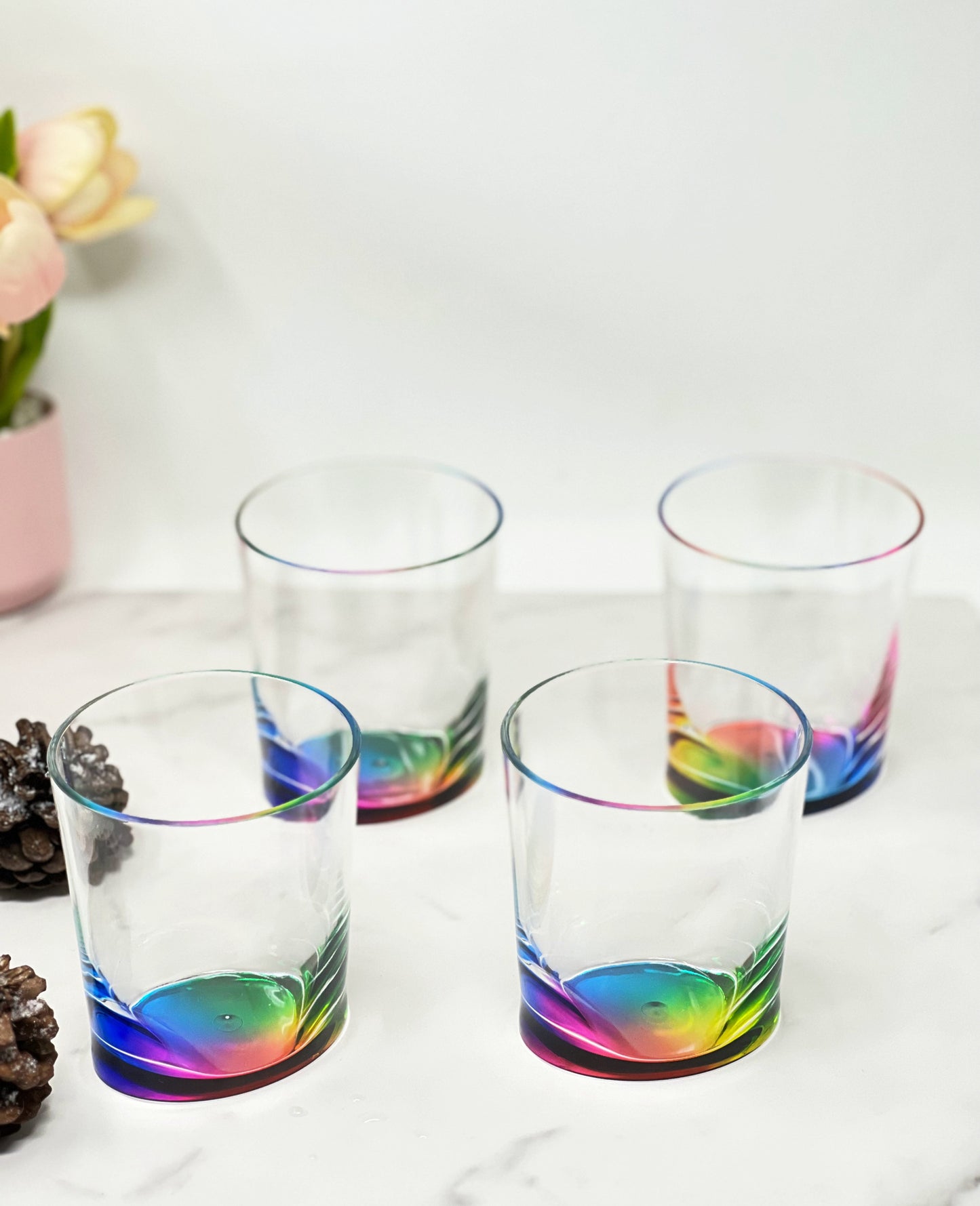 Set of Four Rainbow Geometric Acrylic Stemless Whiskey Glass