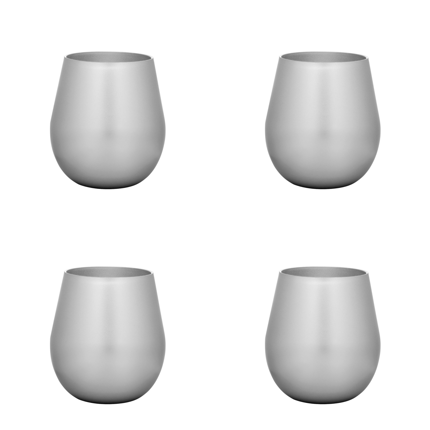 Set of Four Silver Acrylic Stemless All Purpose Wine Glass