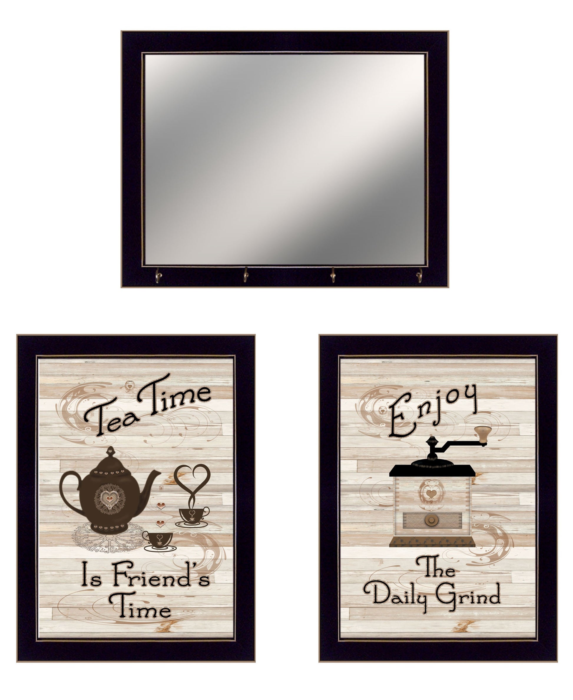 The set of three enjoy tea time 8 black framed prints and mirror with hooks is the perfect decorative accessory for your home. This print is a visual artistic expression that allows you to decorate your space in style. Reproduced for you on paper, this hanging decorative accent will be a trendy and fashionable way to dress your walls. Adding this hanging wall art to your space to make your room feel more finished and attractive. Instantly liven up your space with this art that brings color and dimension to your walls. 14 inches H x 11 inches W x 1 inches D