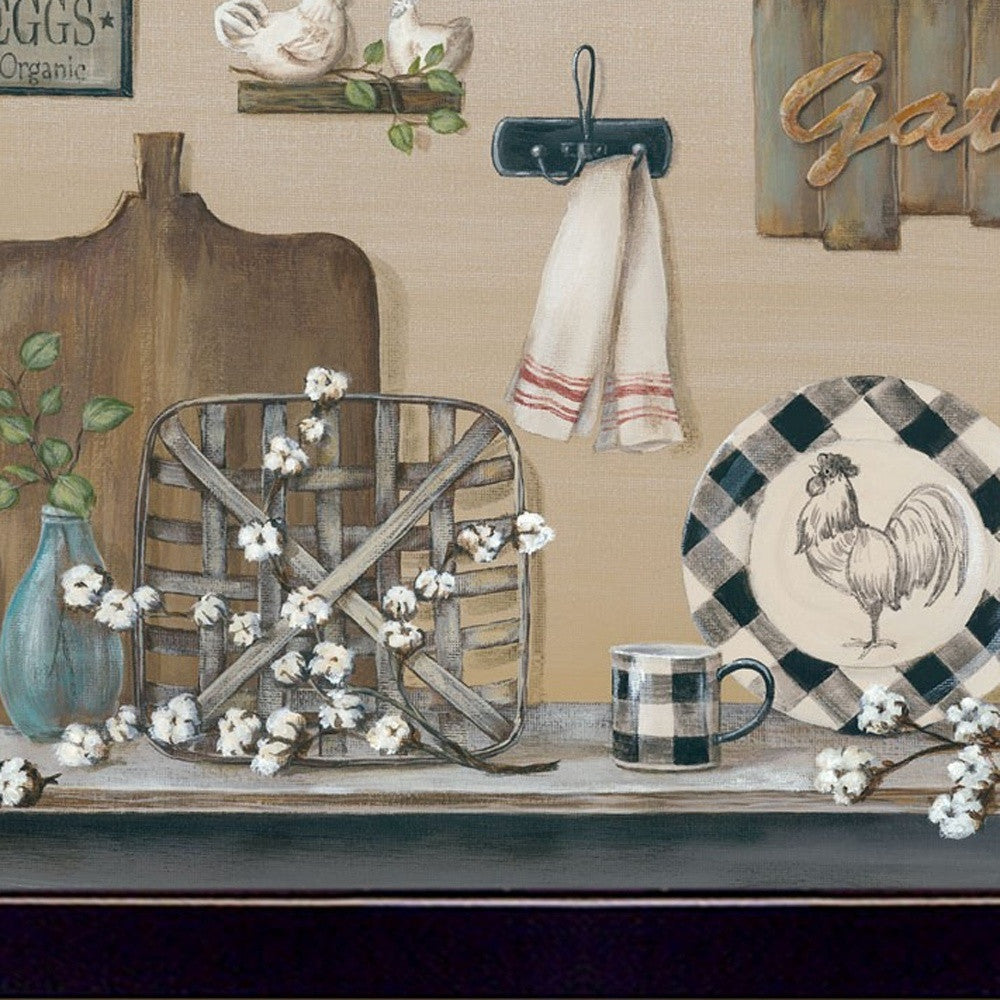 This set of three farmhouse kitchen 3 black framed print kitchen wall art with mirror will add a beautiful decorative accent to your decor. This print is a visual artistic expression that allows you to decorate your space in style. Reproduced for you on paper, this hanging decorative accent will be a trendy and fashionable way to dress your walls. Hang on your wall to add some up to date fashion and decoration. Utilize this opportunity to create a focal point in the room with this fabulous wall decor option. 14 inches H x 18 inches W x 1 inches D