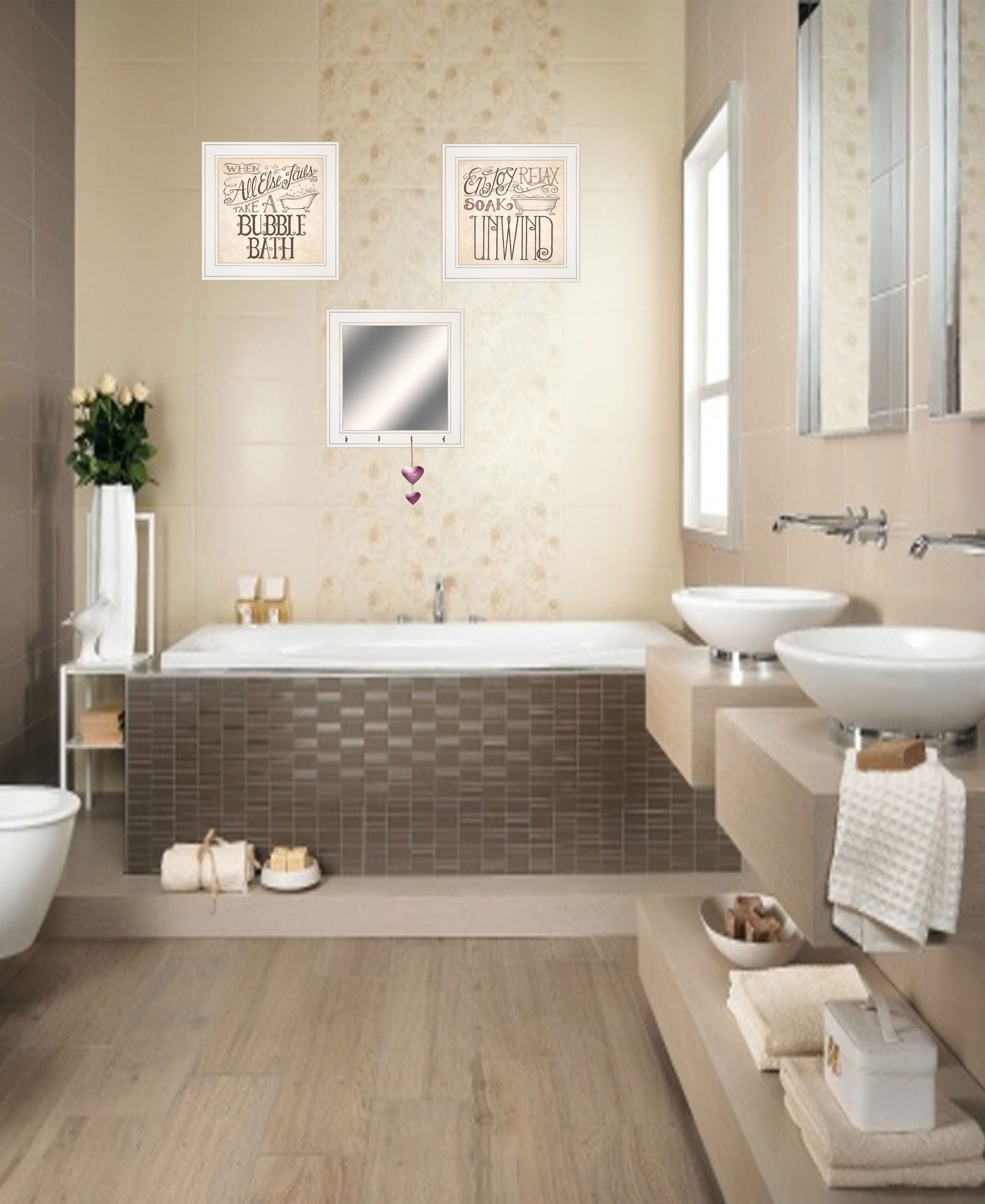 The set of three soak and unwind 2 white framed print bathroom wall art is the perfect decorative accessory for your home. This print is a visual artistic expression that allows you to decorate your space in style. Reproduced for you on paper, this hanging decorative accent will be a trendy and fashionable way to dress your walls. Adding this hanging wall art to your space to make your room feel more finished and attractive. Instantly liven up your space with this art that brings color and dimension to your walls. 15 inches H x 15 inches W x 1 inches D