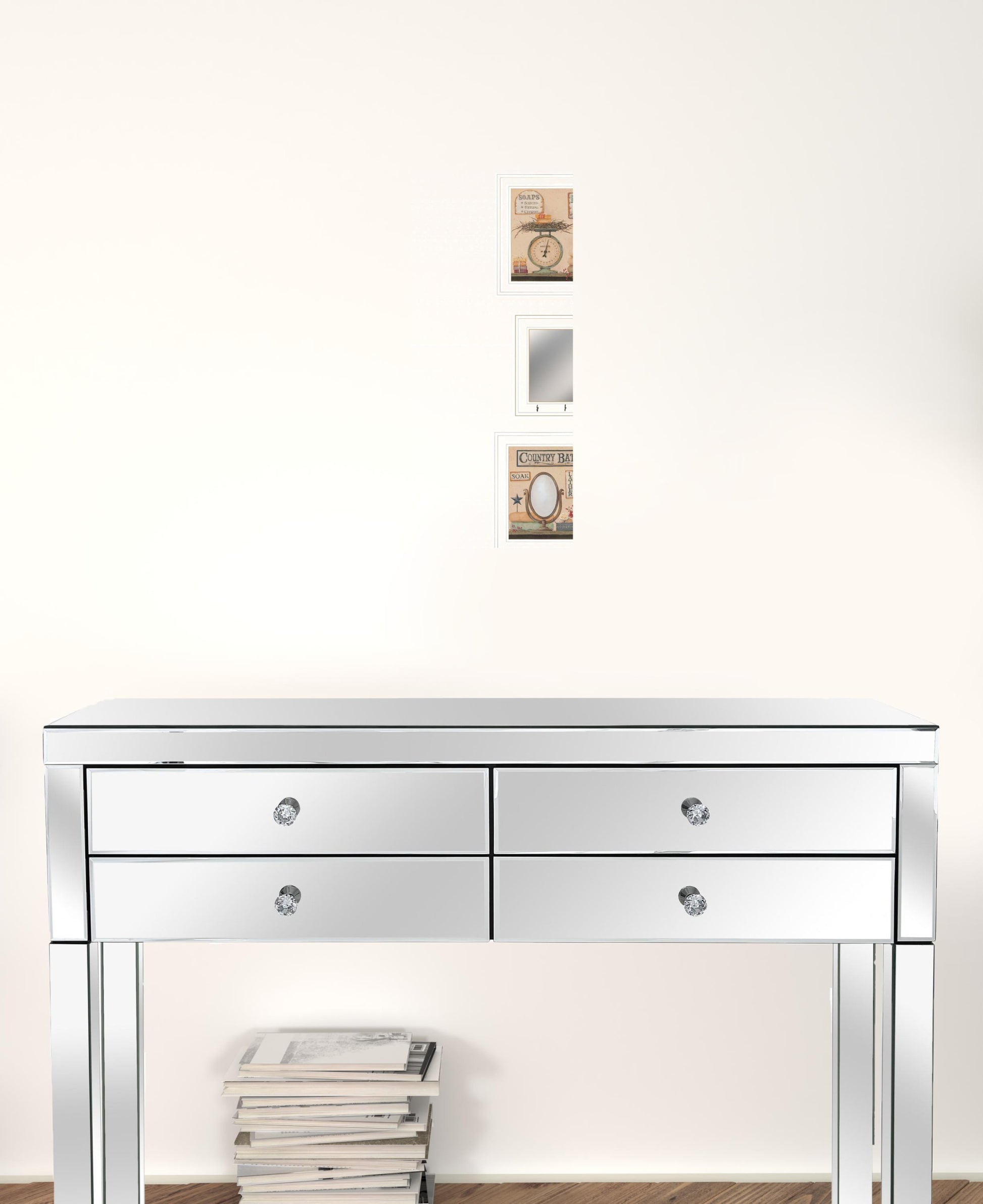 Set Of Three Wash Room White Rim Frame Bathroom Wall Art with Hooks