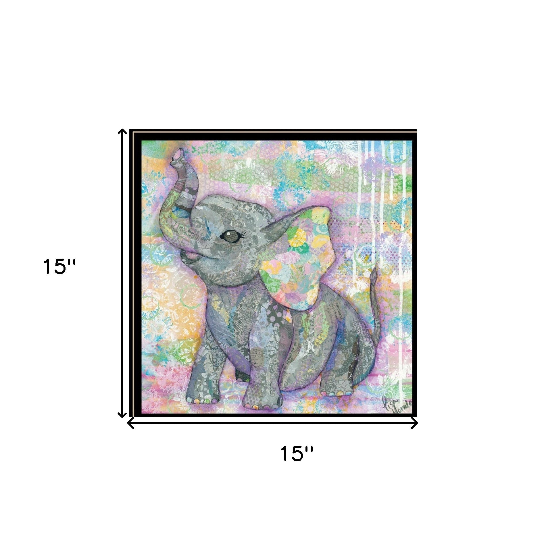Add an air of fashion to your room and rejuvenate the space with this set of three whimsical pastel elephant black framed print wall art with mirror. Update your walls with this wild jungle animal decor. This print is a visual artistic expression that allows you to decorate your space in style. Reproduced for you on paper, this hanging decorative accent will be a trendy and fashionable way to dress your walls. Hang on your wall to add some up to date fashion and decoration. Utilize this opportunity to create a focal point in the room with this fabulous wall decor option. 15 inches H x 15 inches W x 1 inches D