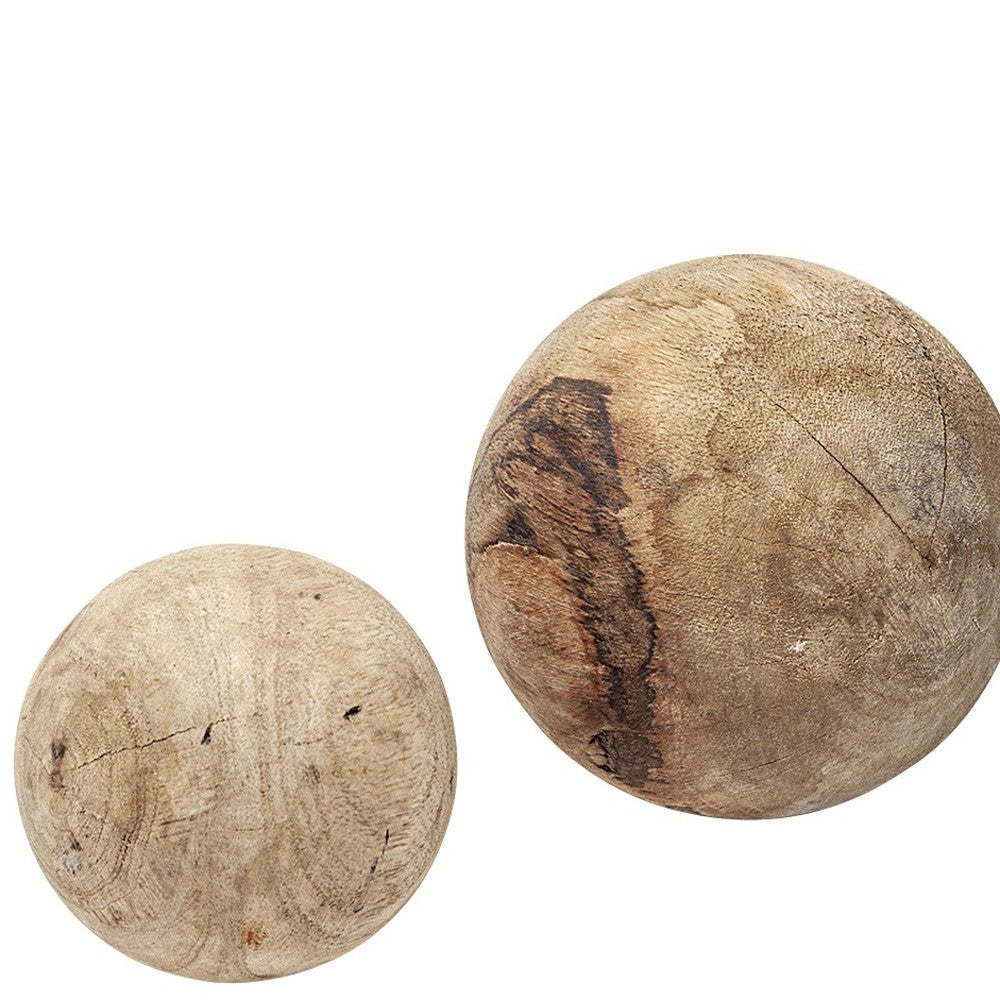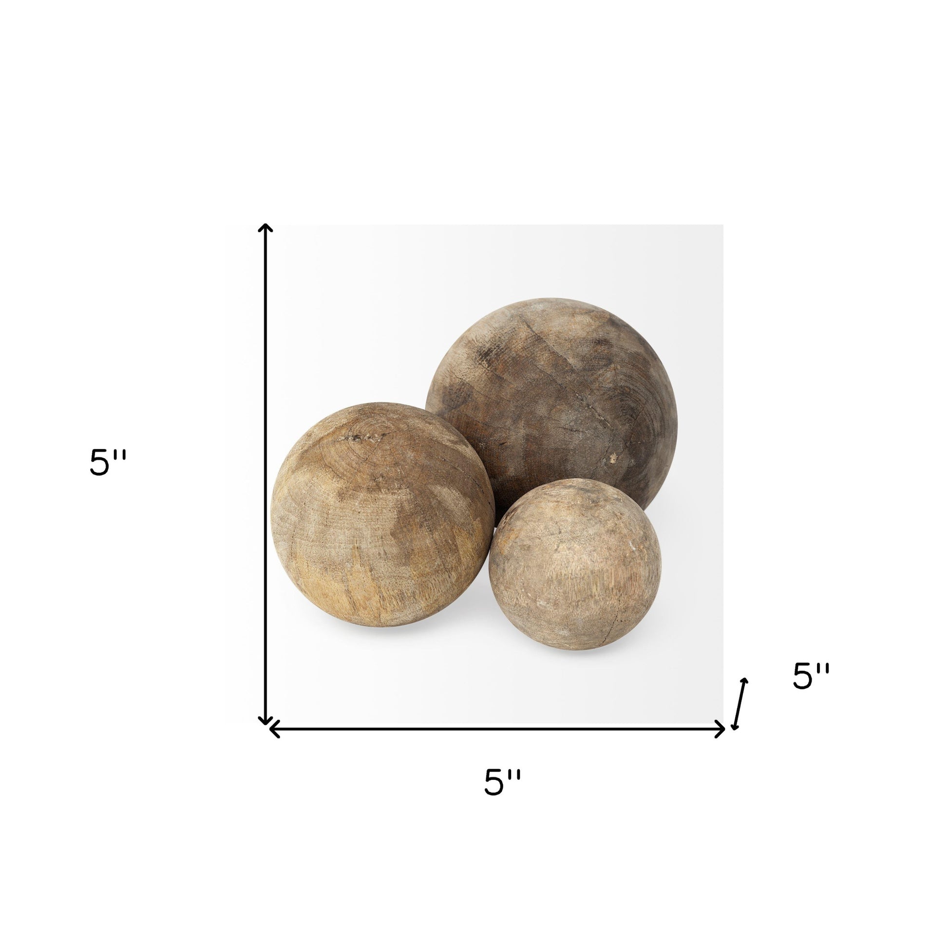 With this Set of Three Wooden Spheres you can add a touch of rustic contemporary design to any room in your home. There are three different sized spheres in this set which are all made from solid wood. There is a natural wooden finish on them which allows the wood grain and other details to show through making these spheres rustic yet chic looking. You can use these unique decorative spheres all in one place or you can break them up and use them around your home as a means of tying the design together. The neutral colorway of these spheres will work with any interior style and will not clash with any colors you already have in your room. 5" H x 5" W x 5" D