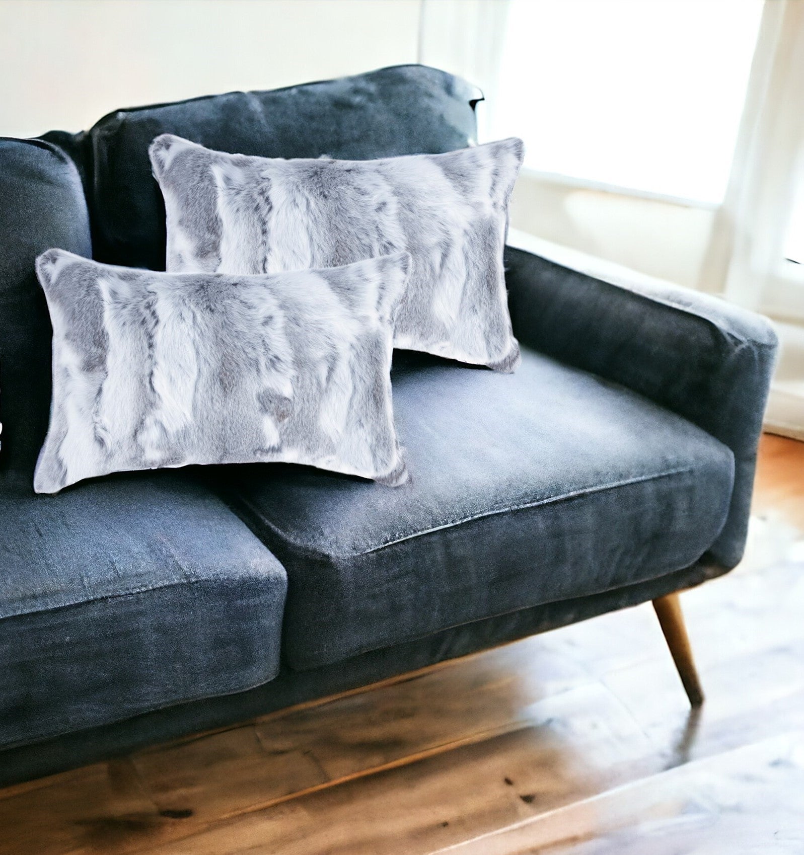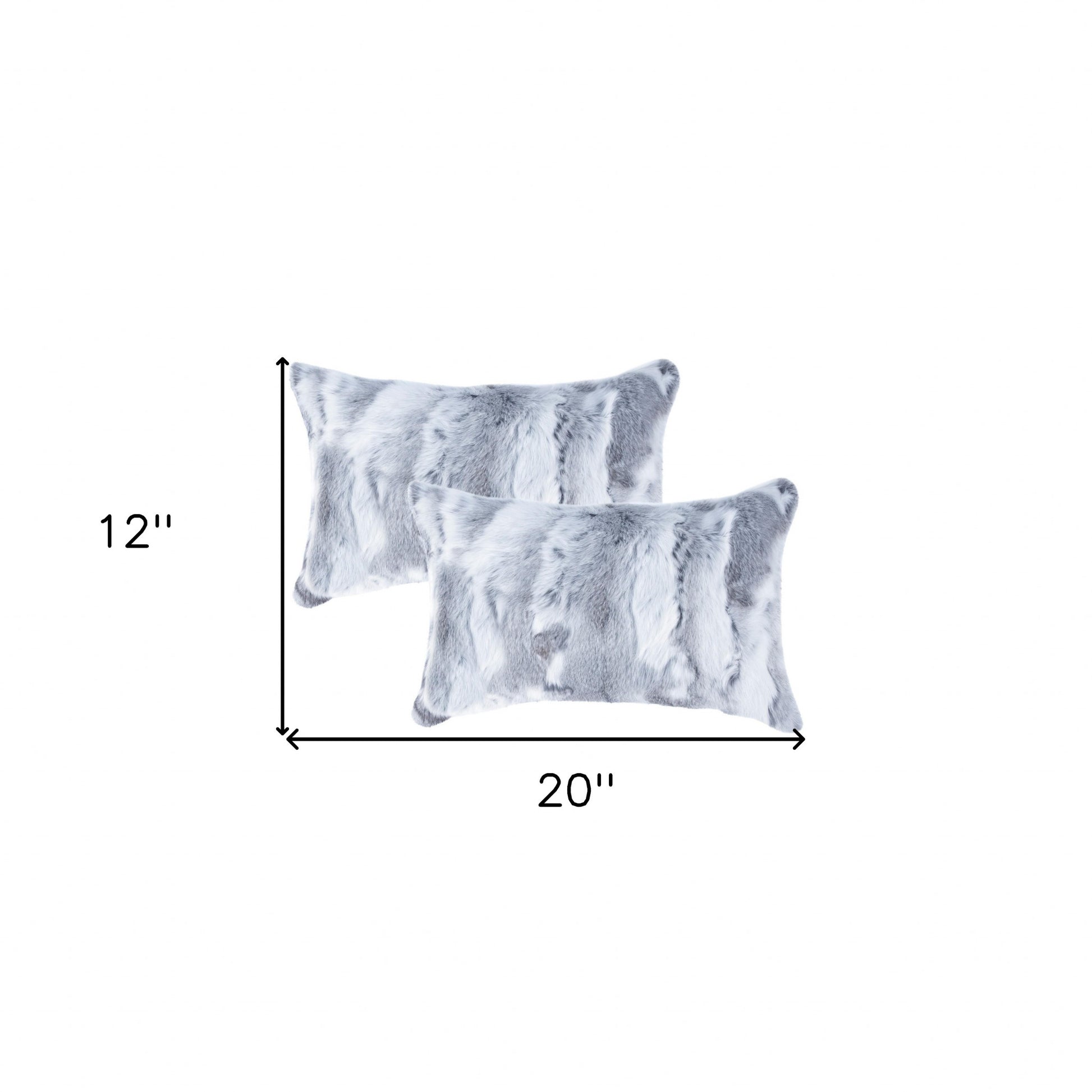 Set Of Two 12" X 20" Grey Rabbit Natural Fur Throw Pillows