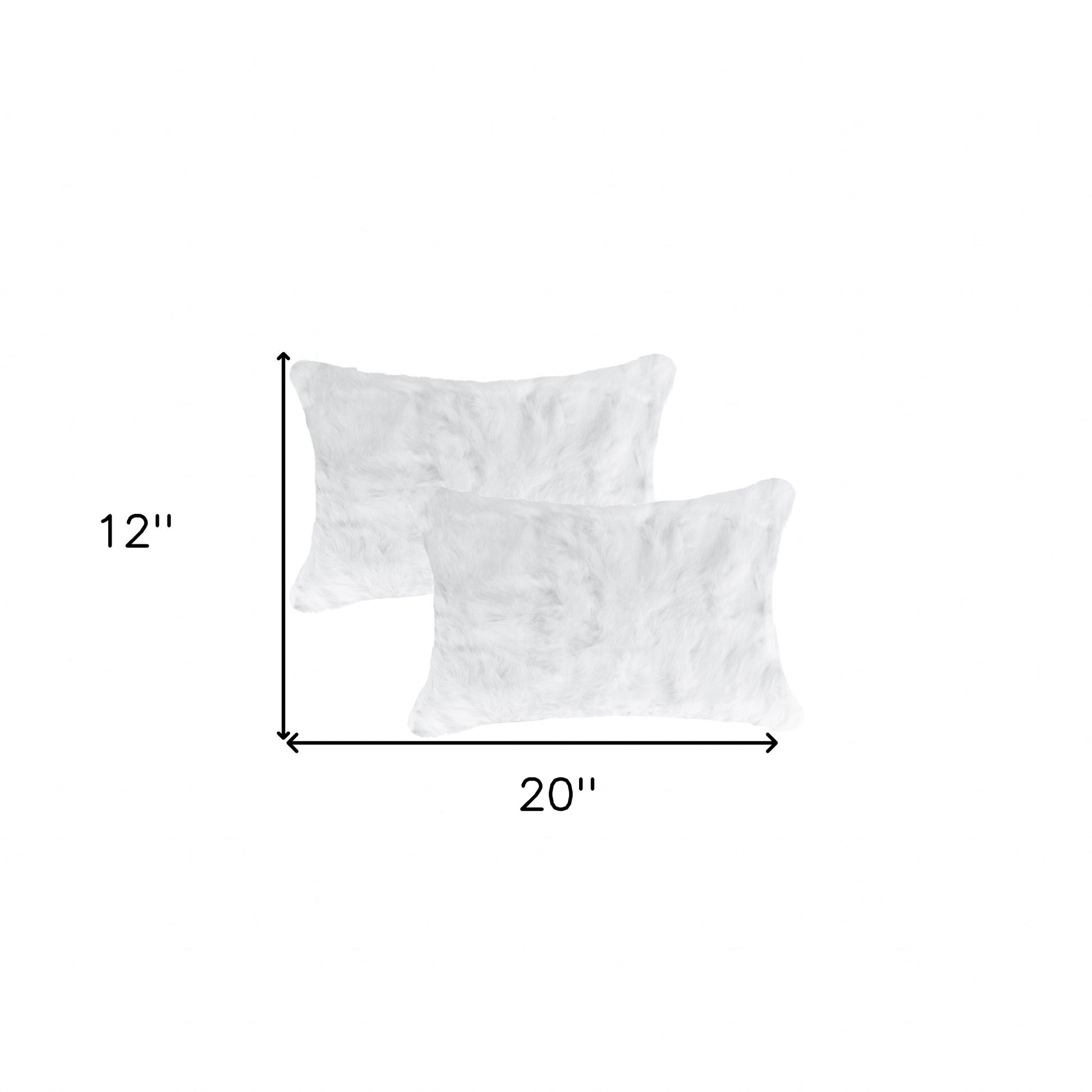 Bring a bit of fashion and zip to your space with this eye-catching and comfy set of two 12" x 20" white rabbit natural fur throw pillows. These gorgeously luxurious and chic pillows are made from high grade natural fur that makes it soft and long lasting. Makes a perfect decorative addition for anyone who loves a stylish look and feel. You can be certain that you'll be leaving an impression with this unique piece. 5" H x 12" W x 20" D