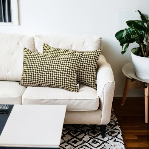 Set of Two 12" X 20" Yellow and Black Houndstooth Polyester Zippered Pillow Cover