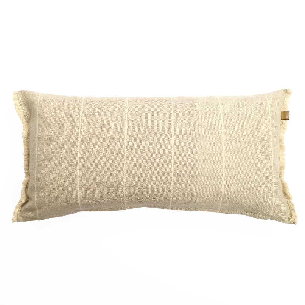 This set of two 12" x 24" tan 100% cotton striped zippered pillow with fringe will add a beautiful decorative accent to your decor. Soft and textural tan 100% cotton has been used to make this decorative pillow set look and feel refined and luxurious. Fun and decorative fringe add some high end and hand-crafted textural designer touches. Super soft and built to hold its shape, this polyfill pillow is a great option. Great to use on its own or mix with other decorations for the perfect look. A great decorative accessory for your favorite chair, to accent your sofa, or to use as part of your bed ensemble. 12" H x 24" W x 5" D