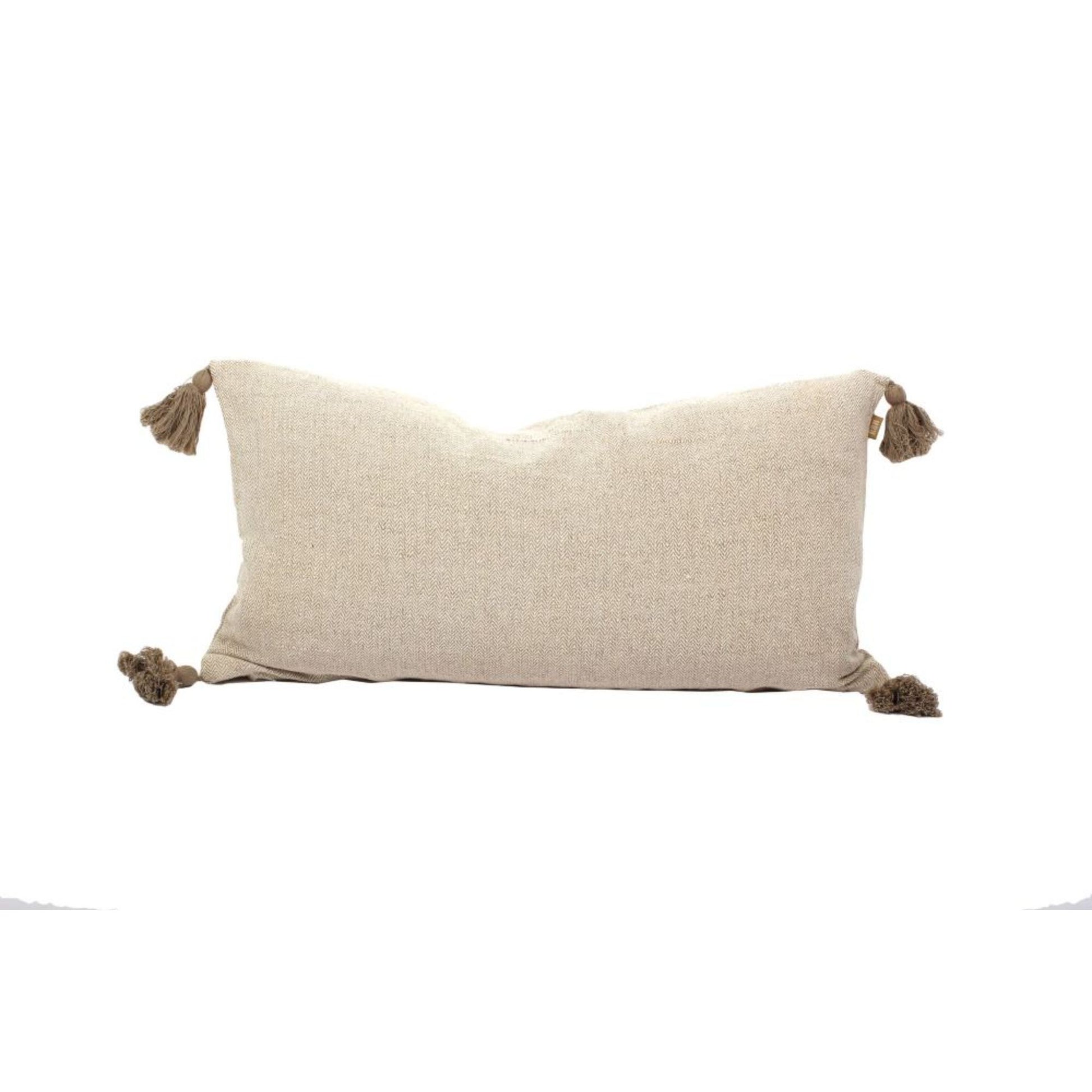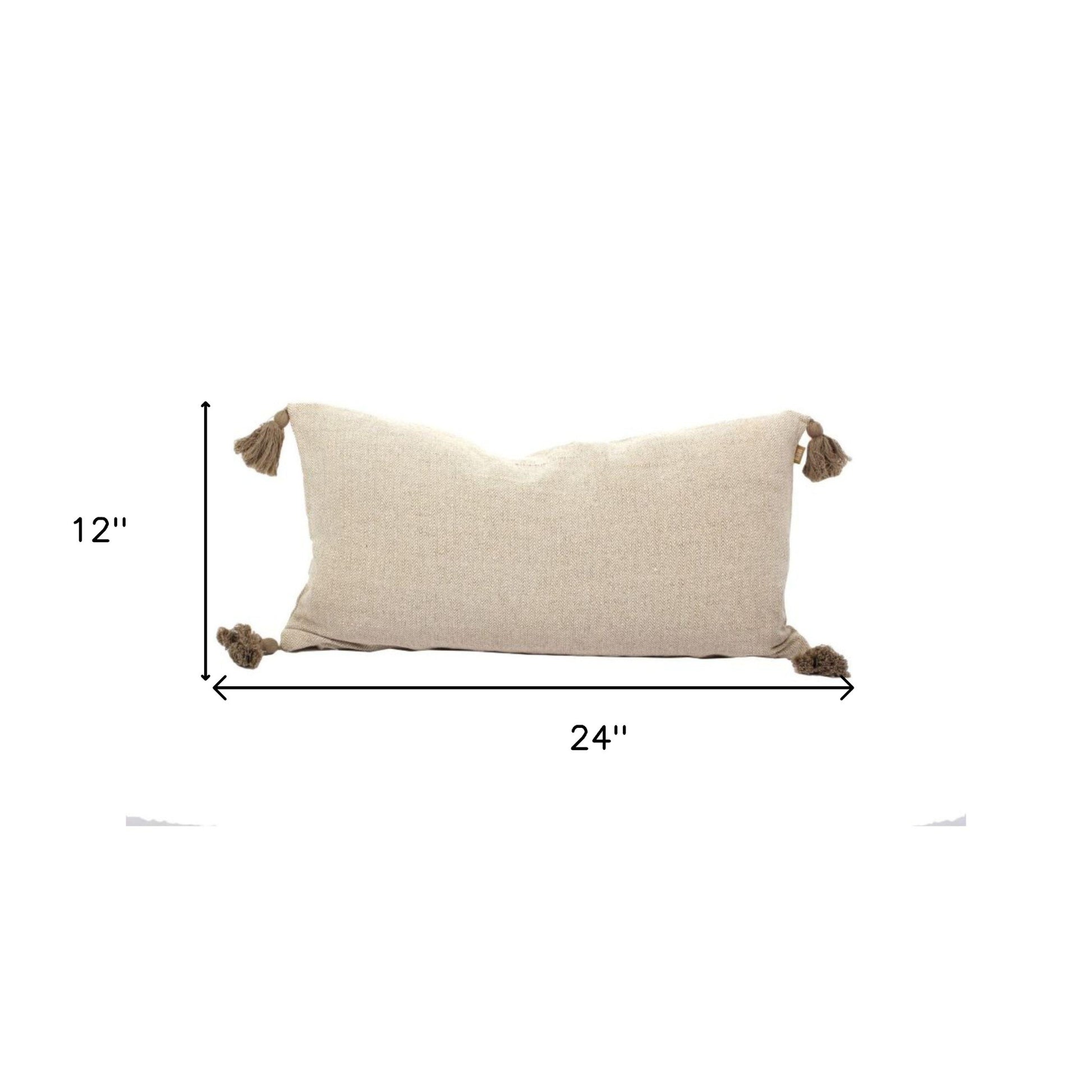 Set Of Two 12" x 24" Taupe 100% Cotton Herringbone Pillows With Tassels