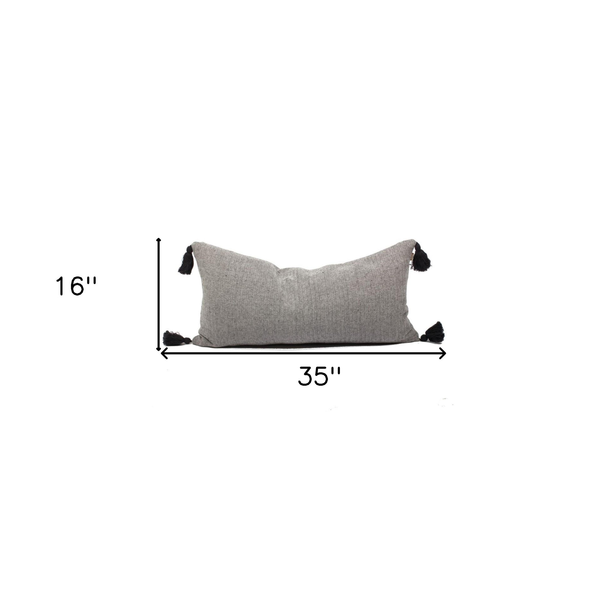 The set of two 16" x 35" dark slate gray 100% cotton herringbone zippered pillows with tassels is the perfect decorative accessory for your home. Soft and textural dark slate gray 100% cotton has been used to make this decorative pillow set look and feel refined and luxurious. Fun and decorative tassels add some high end and hand-crafted textural designer touches. This soft polyfill pillow not only is decorative but made to be comfy and cozy all day long. Decorative throw pillows not only add color and dimension to your space but can be comfy and supportive when you are lounging and cuddling as well. A great decorative accessory for your favorite chair, to accent your sofa, or to use as part of your bed ensemble. 16" H x 35" W x 6" D