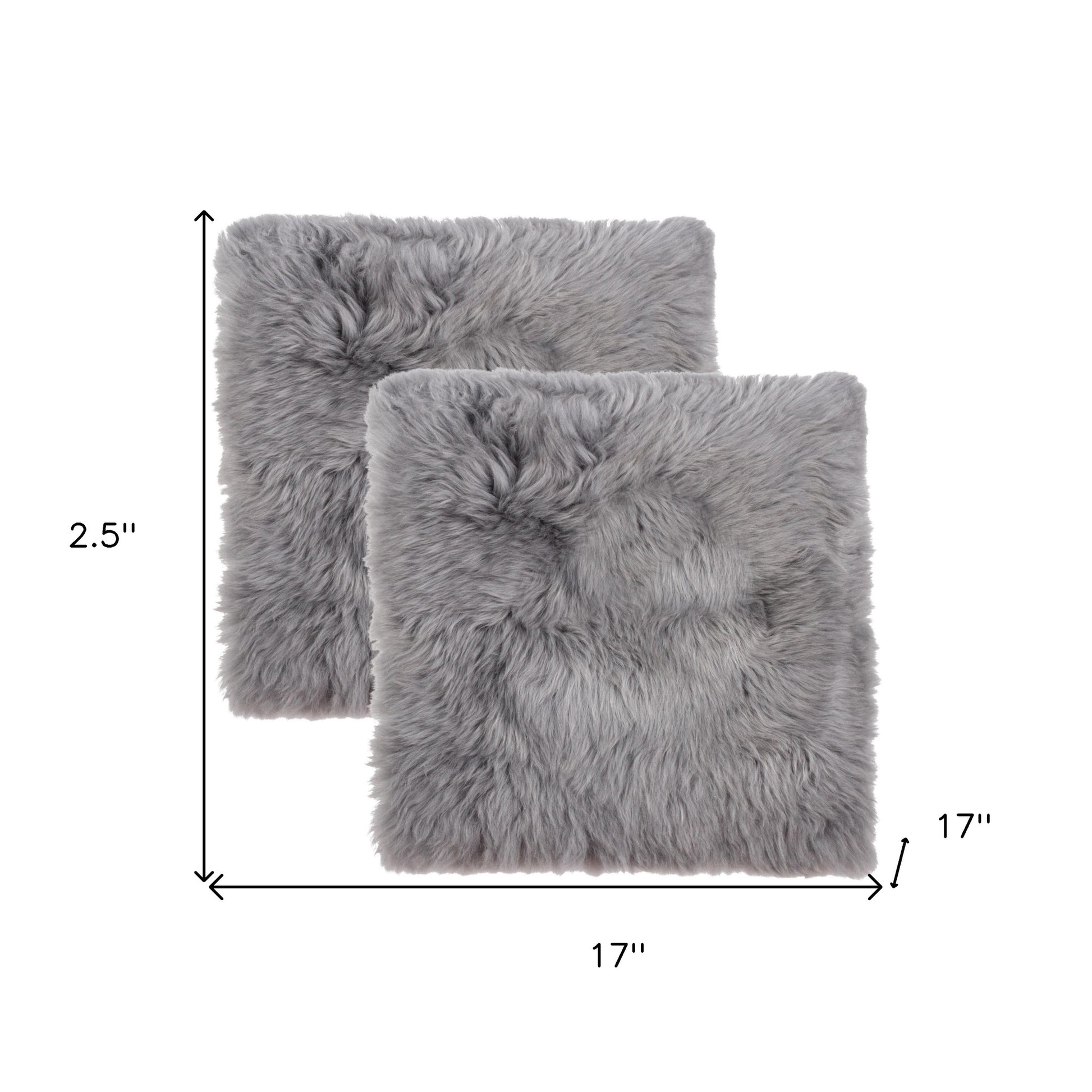 Set Of Two 17" X 17" Grey Wool Chair Pads