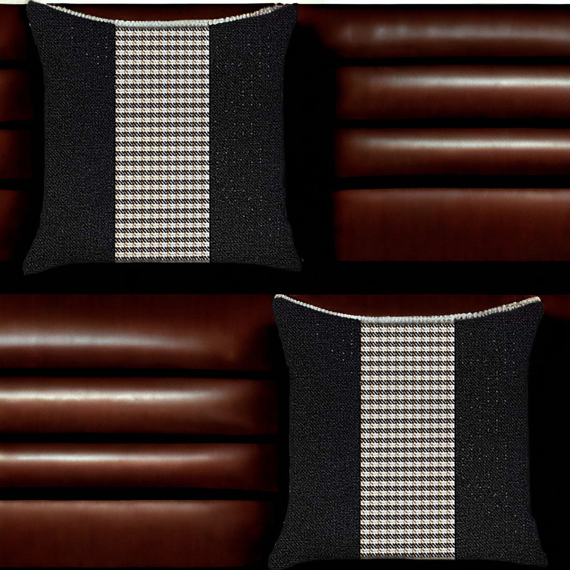 Set Of Two 18" X 18" Black And Brown Polyester Houndstooth Zippered Pillow
