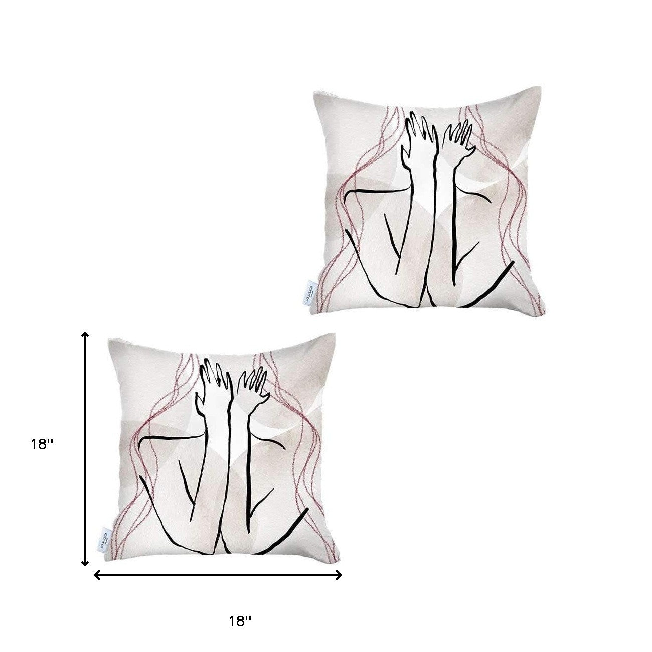 Set of Two 18" X 18" Gray and Black Abstract Polyester Zippered Pillow