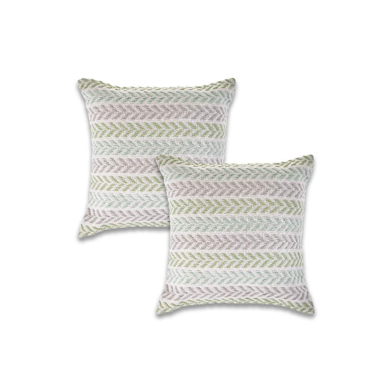 Set of Two 18" X 18" Green Beach Chevron Cotton Zippered Pillow
