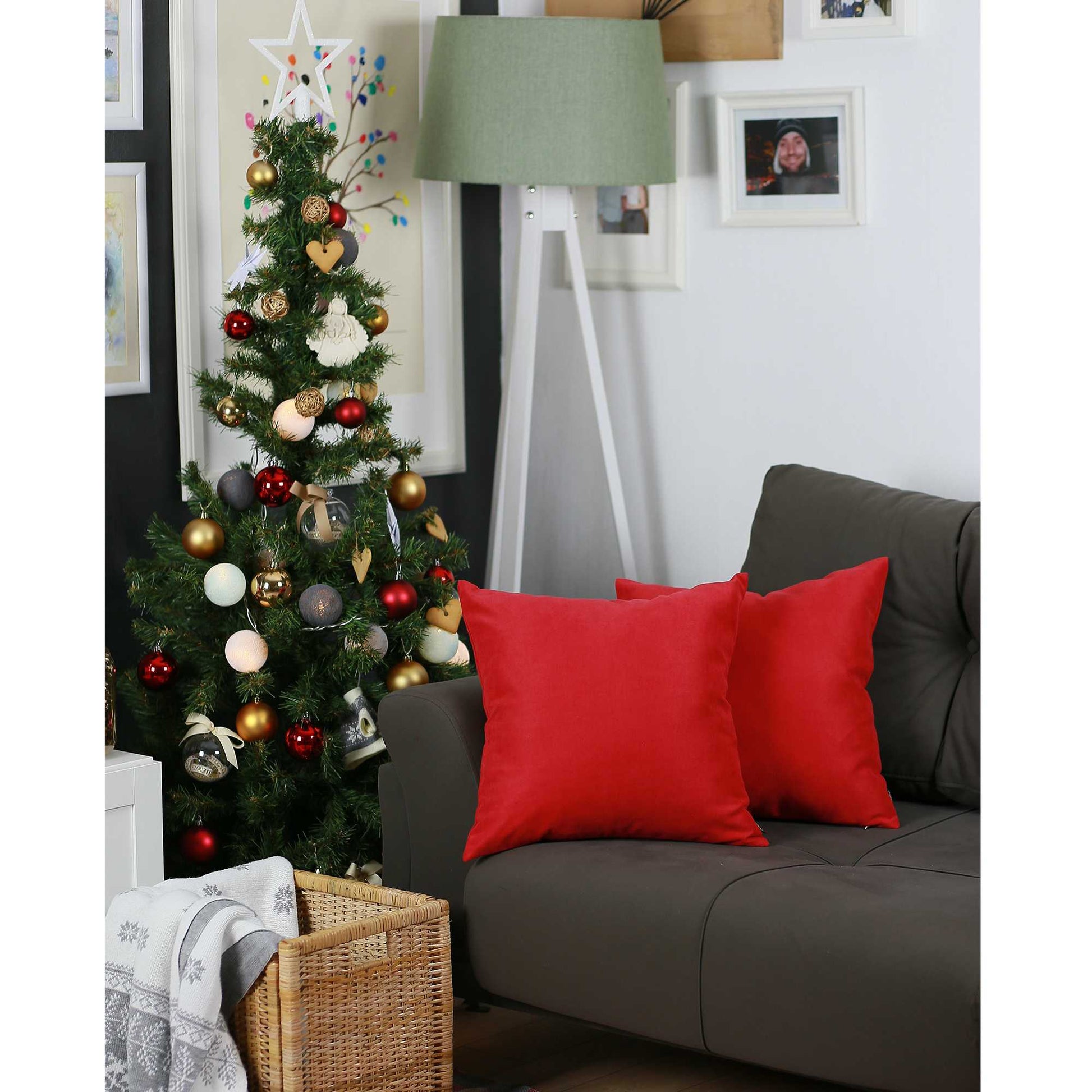 Unique and decorative, this comfortable set of two 18-inch x 18-inch red polyester zippered pillow cover will leave a lasting impression. These great looking soft decorative pillow covers are expertly made of durable and long lasting polyester in a red coloration. Great to use on its own or mix with other decorations for the perfect look. Decorative pillows are a great way to change up the look and feel of your space easily and quickly. 18-inch H x 18-inch W x 1-inch D