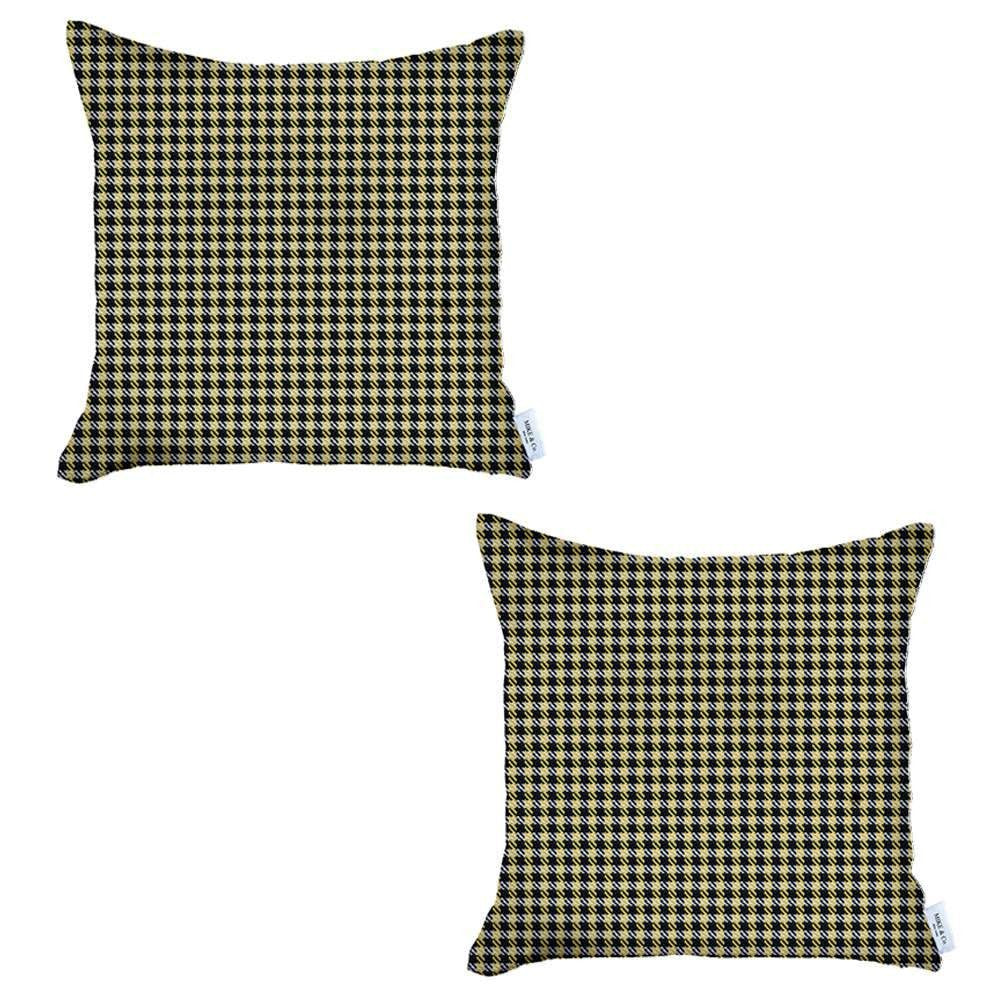 Set Of Two 18" X 18" Yellow Polyester Houndstooth Zippered Pillow