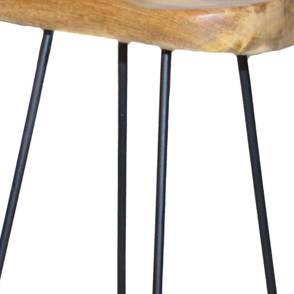 Set of Two 25" Natural And Black Steel Backless Counter Height Bar Chairs