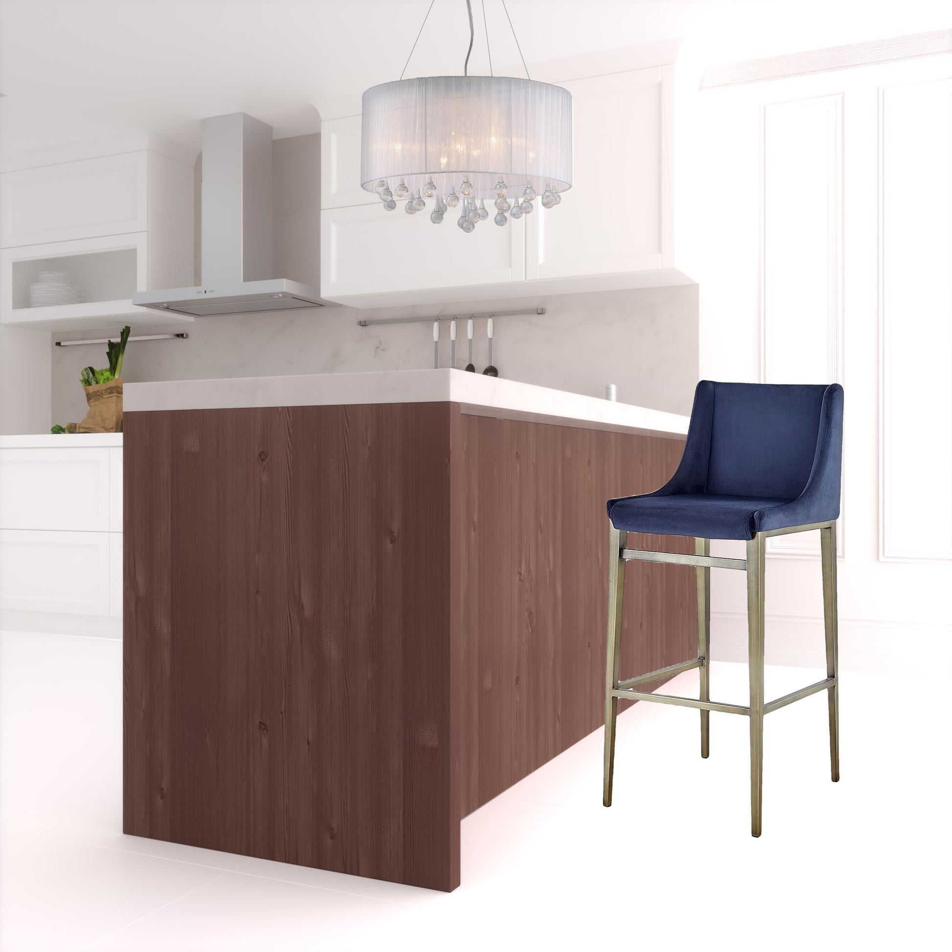 Comfortable enough to sit in for awhile, this set of two 31-inch blue and silver velvet and steel bar height bar chairs with footrest will transcend the look of your room. Quality construction from silver steel combines with blue velvet to give this stool a fresh and updated look. A full back mixed with a square shaped seat design makes this chair both comfortable and fashionable. Designed with a footrest for comfort and convenience. 40.9-inch H x 16.9-inch W x 20.1-inch D