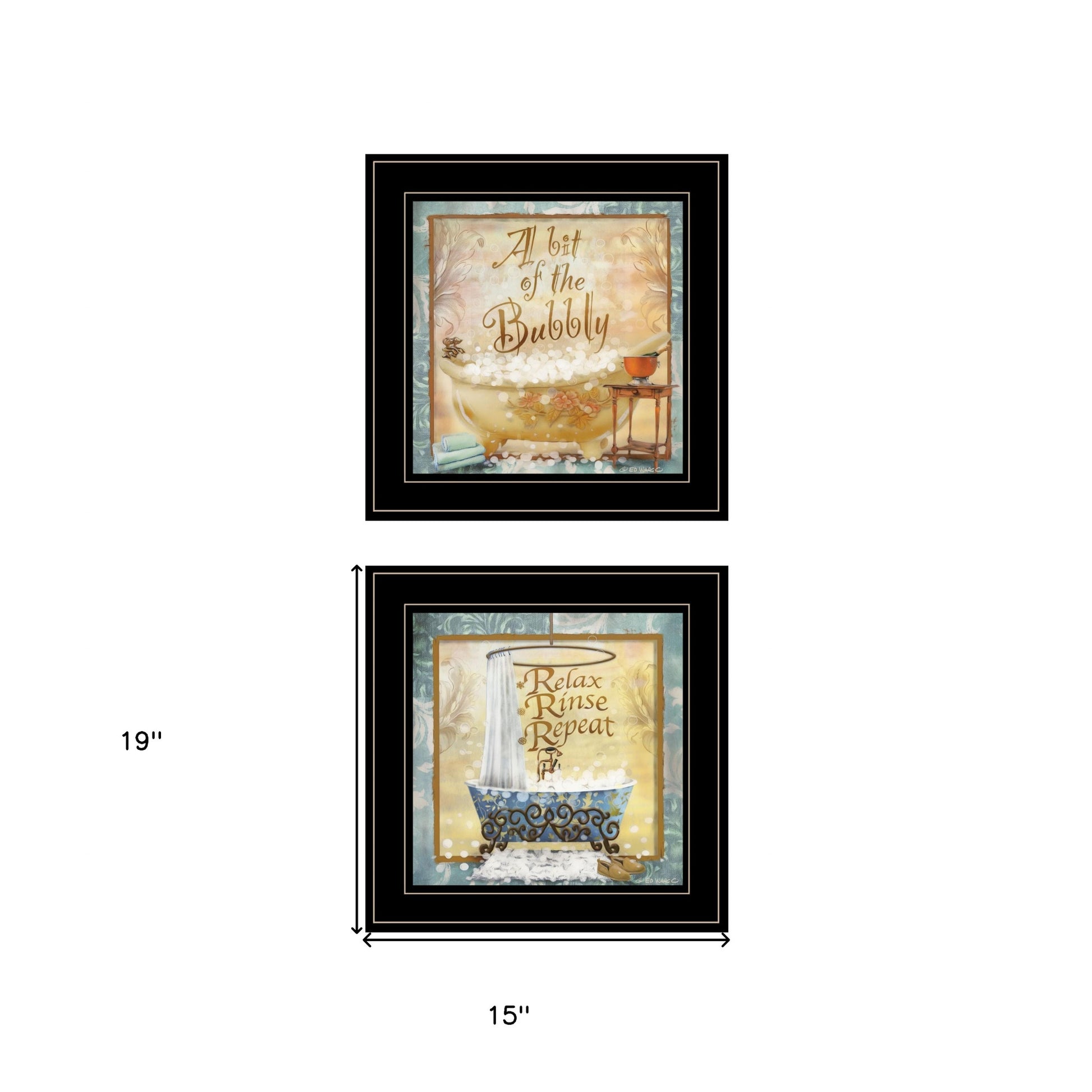 Bring some sizzle to your space with this eye-catching set of two a bit of bubbly 2 black framed print bathroom wall art. This print is a visual artistic expression that allows you to decorate your space in style. Reproduced for you on paper, this hanging decorative accent will be a trendy and fashionable way to dress your walls. Adding this hanging wall art to your space to make your room feel more finished and attractive. Utilize this opportunity to create a focal point in the room with this fabulous wall decor option. 15 inches H x 19 inches W x 1 inches D