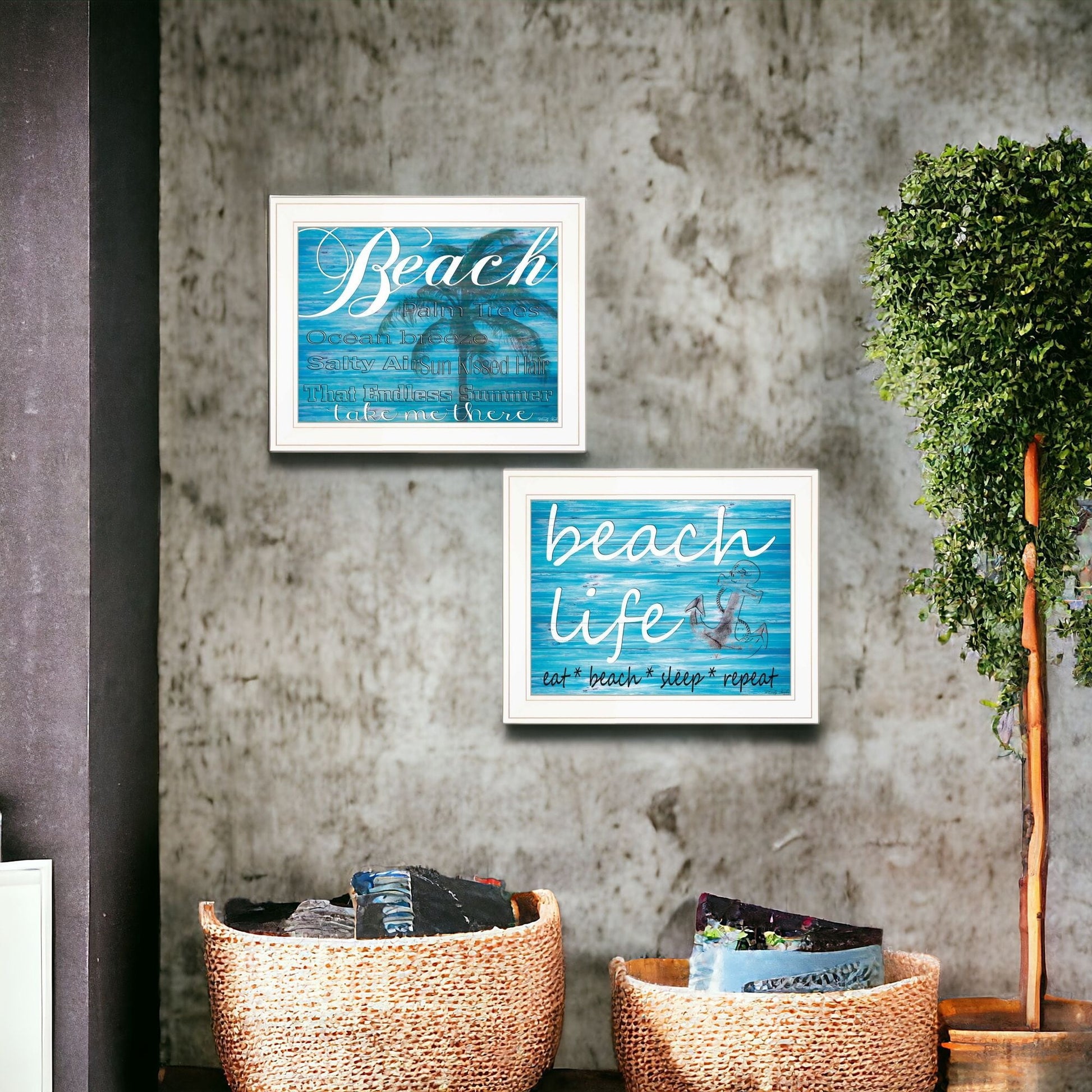 Bring some sizzle to your space with this eye-catching set of two beach life 4 white framed print wall art. This print is a visual artistic expression that allows you to decorate your space in style. Reproduced for you on paper, this hanging decorative accent will be a trendy and fashionable way to dress your walls. Adding this hanging wall art to your space to make your room feel more finished and attractive. Utilize this opportunity to create a focal point in the room with this fabulous wall decor option. 31 inches H x 19 inches W x 1 inches D