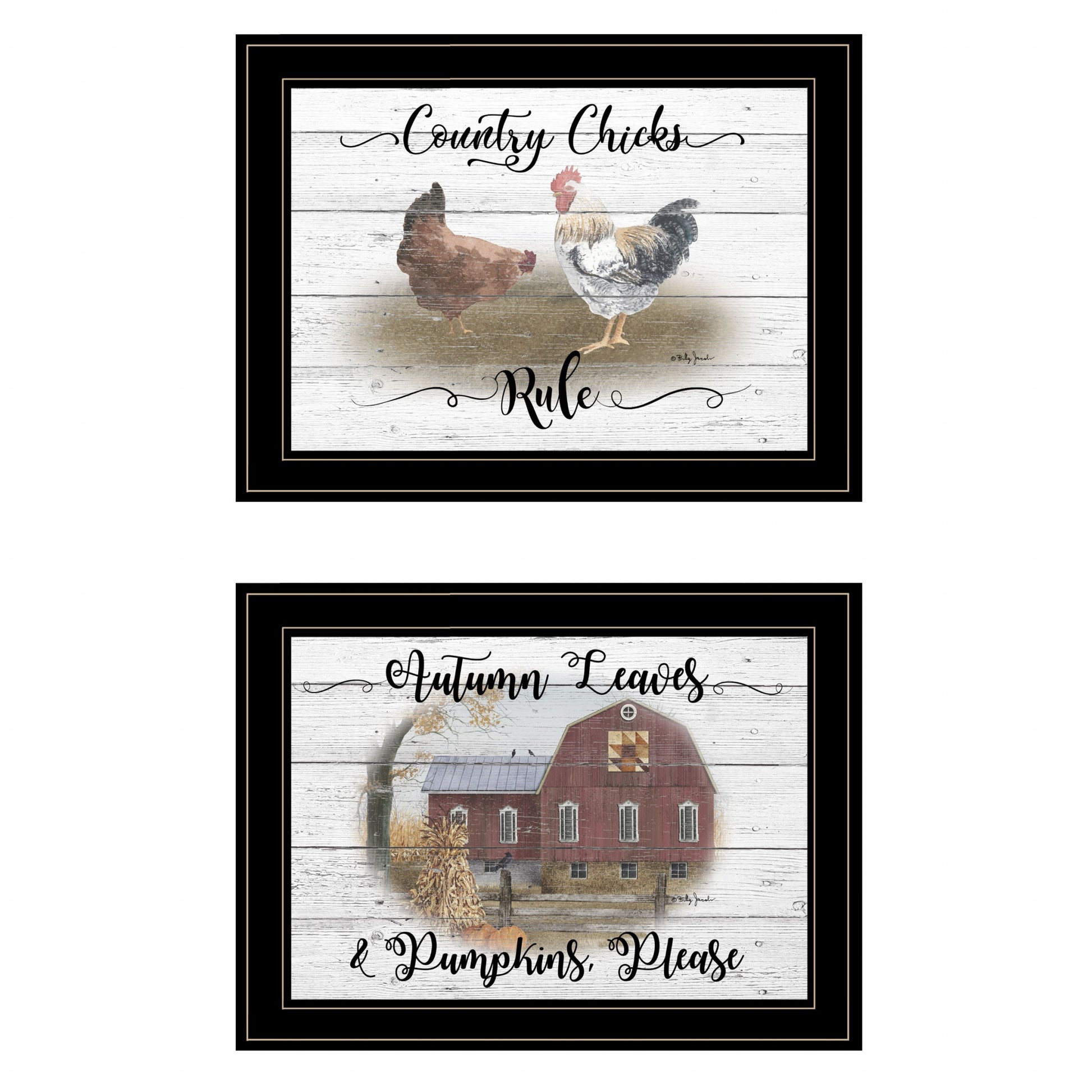 Add an air of fashion to your room and rejuvenate the space with this set of two chickens and autumn black framed print wall art. This print is a visual artistic expression that allows you to decorate your space in style. Reproduced for you on paper, this hanging decorative accent will be a trendy and fashionable way to dress your walls. Hang on your wall to add some up to date fashion and decoration. Utilize this opportunity to create a focal point in the room with this fabulous wall decor option. 15 inches H x 19 inches W x 1 inches D