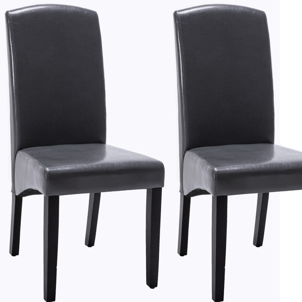 Set of Two Dark Gray And Black Upholstered Faux Leather Dining Parsons Chairs
