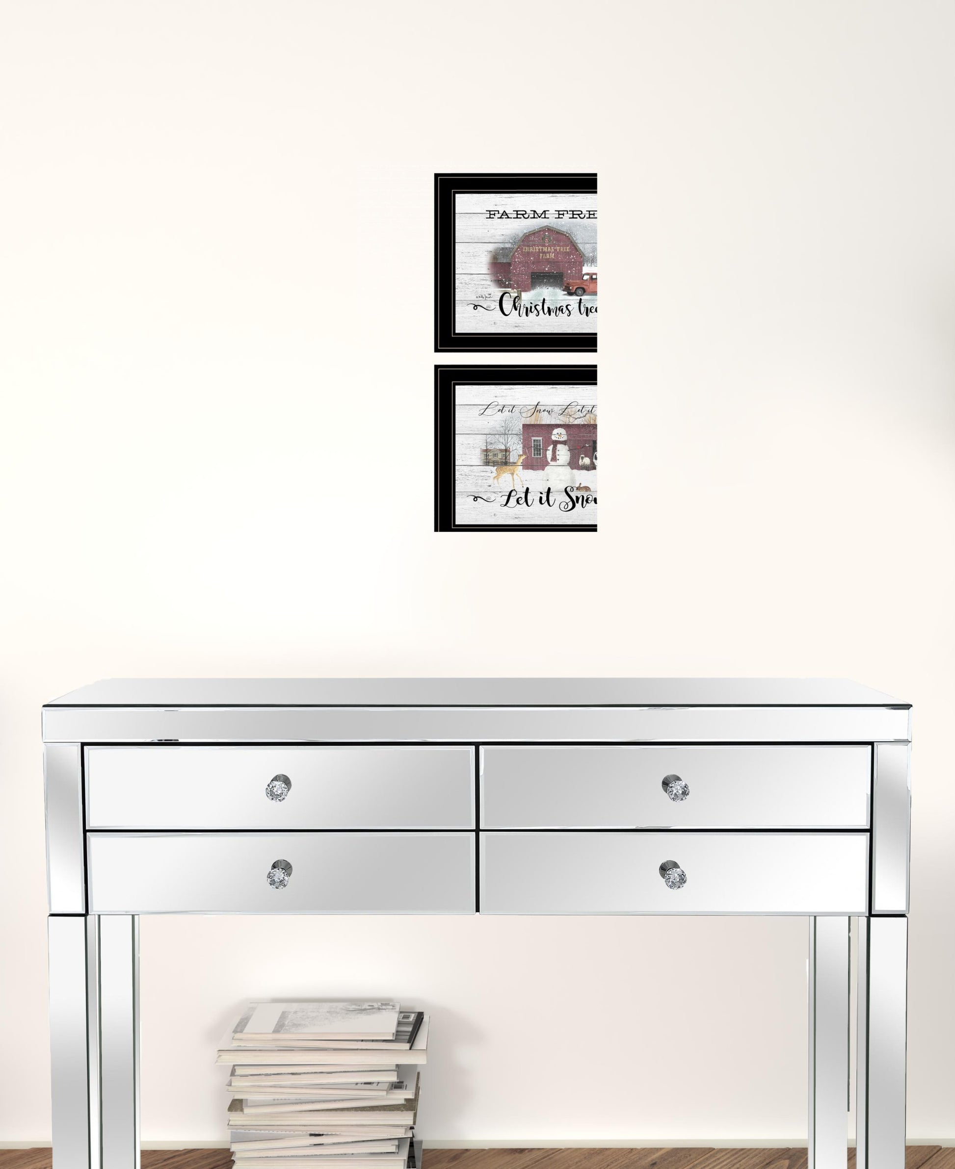 Set a festive Christmas mood with this set of two farm christmas trees and snow black framed print wall art. This print is a visual artistic expression that allows you to decorate your space in style. Reproduced for you on paper, this hanging decorative accent will be a trendy and fashionable way to dress your walls. Adding this hanging wall art to your space to make your room feel more finished and attractive. Utilize this opportunity to create a focal point in the room with this fabulous wall decor option. 15 inches H x 19 inches W x 1 inches D