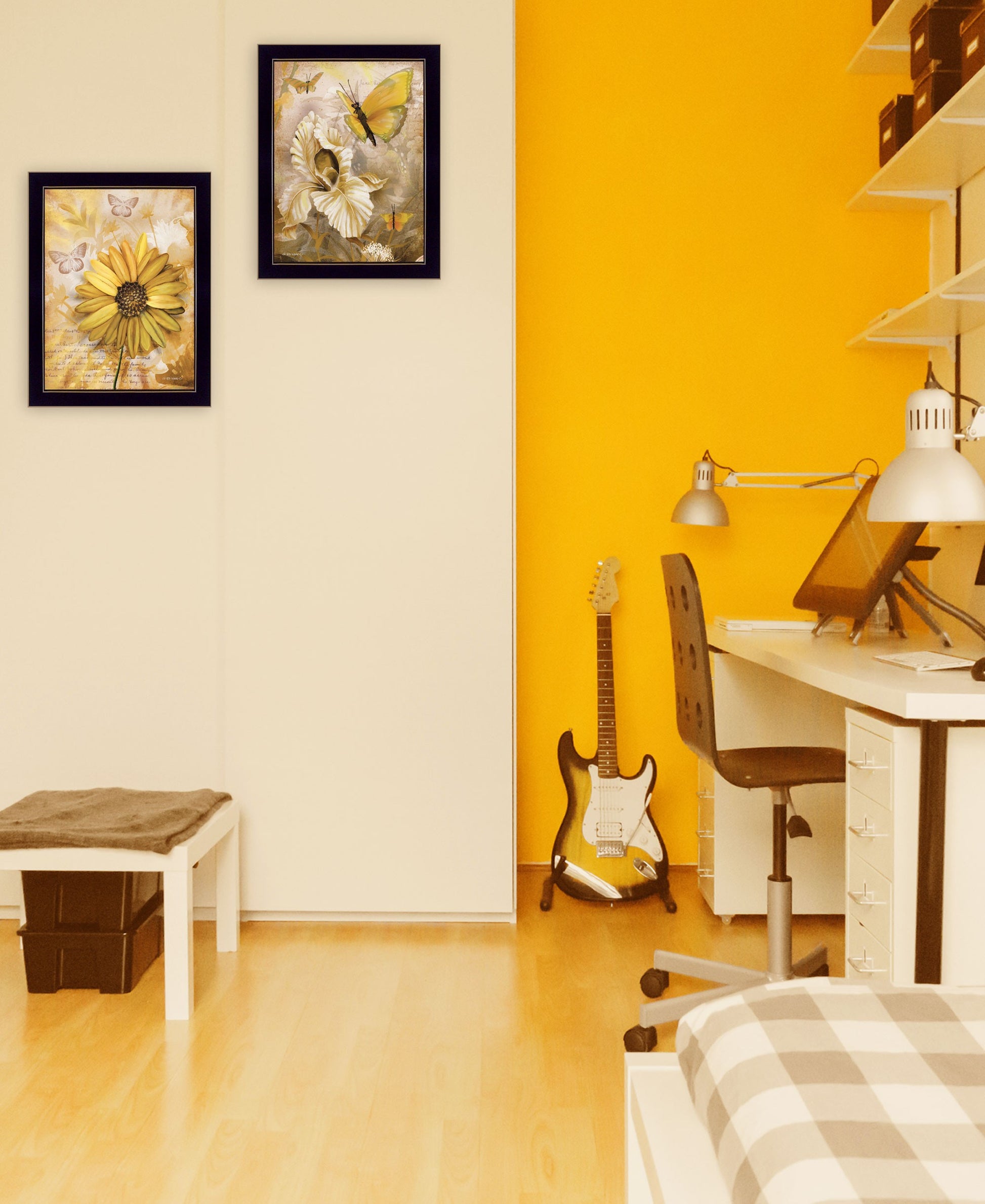 Add an air of fashion to your room and rejuvenate the space with this set of two flowers and butterflies 3 black framed print wall art. This print is a visual artistic expression that allows you to decorate your space in style. Reproduced for you on paper, this hanging decorative accent will be a trendy and fashionable way to dress your walls. Hang on your wall to add some up to date fashion and decoration. Instantly liven up your space with this art that brings color and dimension to your walls. 14 inches H x 18 inches W x 1 inches D