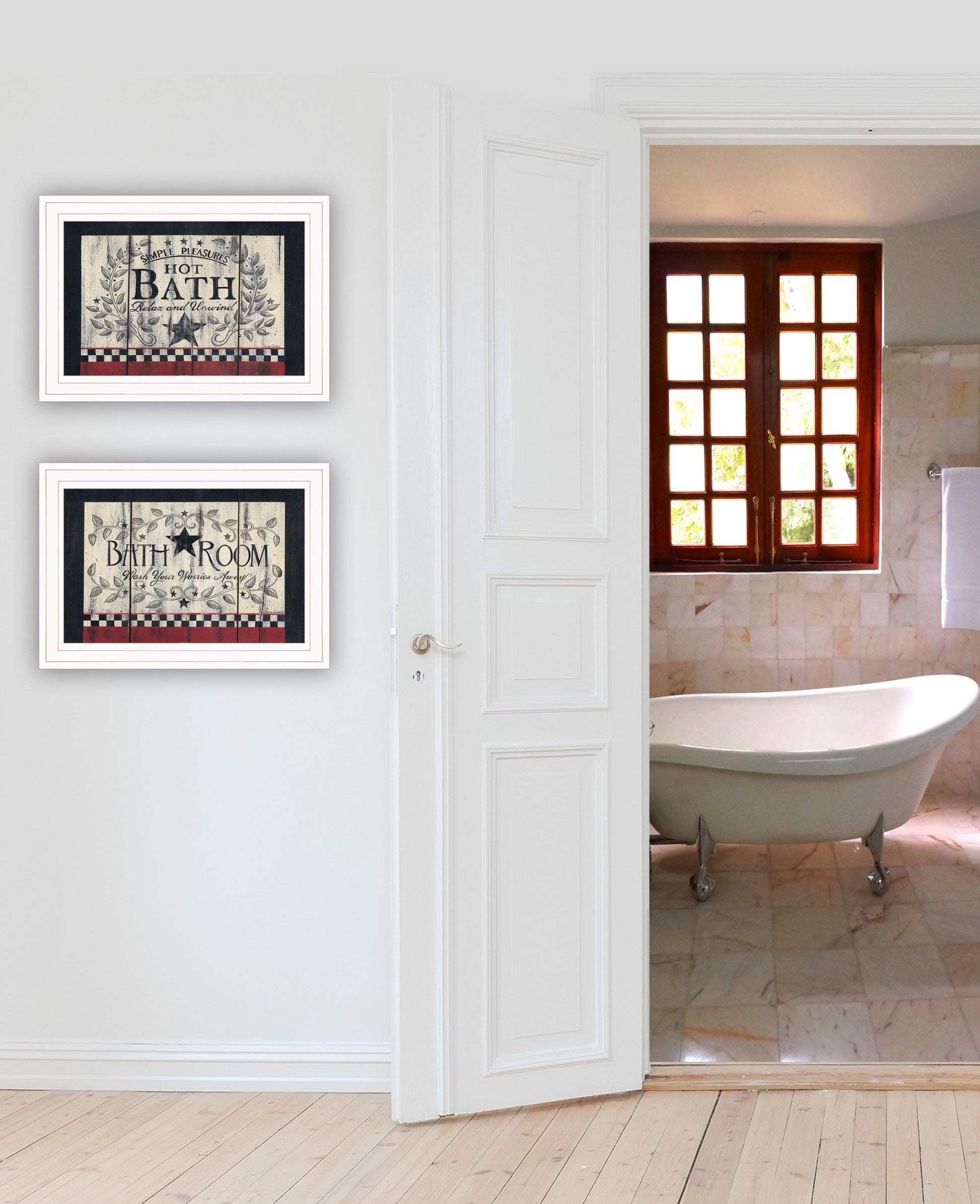 Unique and decorative, this set of two hot bath 4 white framed print wall art will leave a lasting impression. This print is a visual artistic expression that allows you to decorate your space in style. Reproduced for you on paper, this hanging decorative accent will be a trendy and fashionable way to dress your walls. Hang on your wall to add some up to date fashion and decoration. Utilize this opportunity to create a focal point in the room with this fabulous wall decor option. 11 inches H x 15 inches W x 1 inches D
