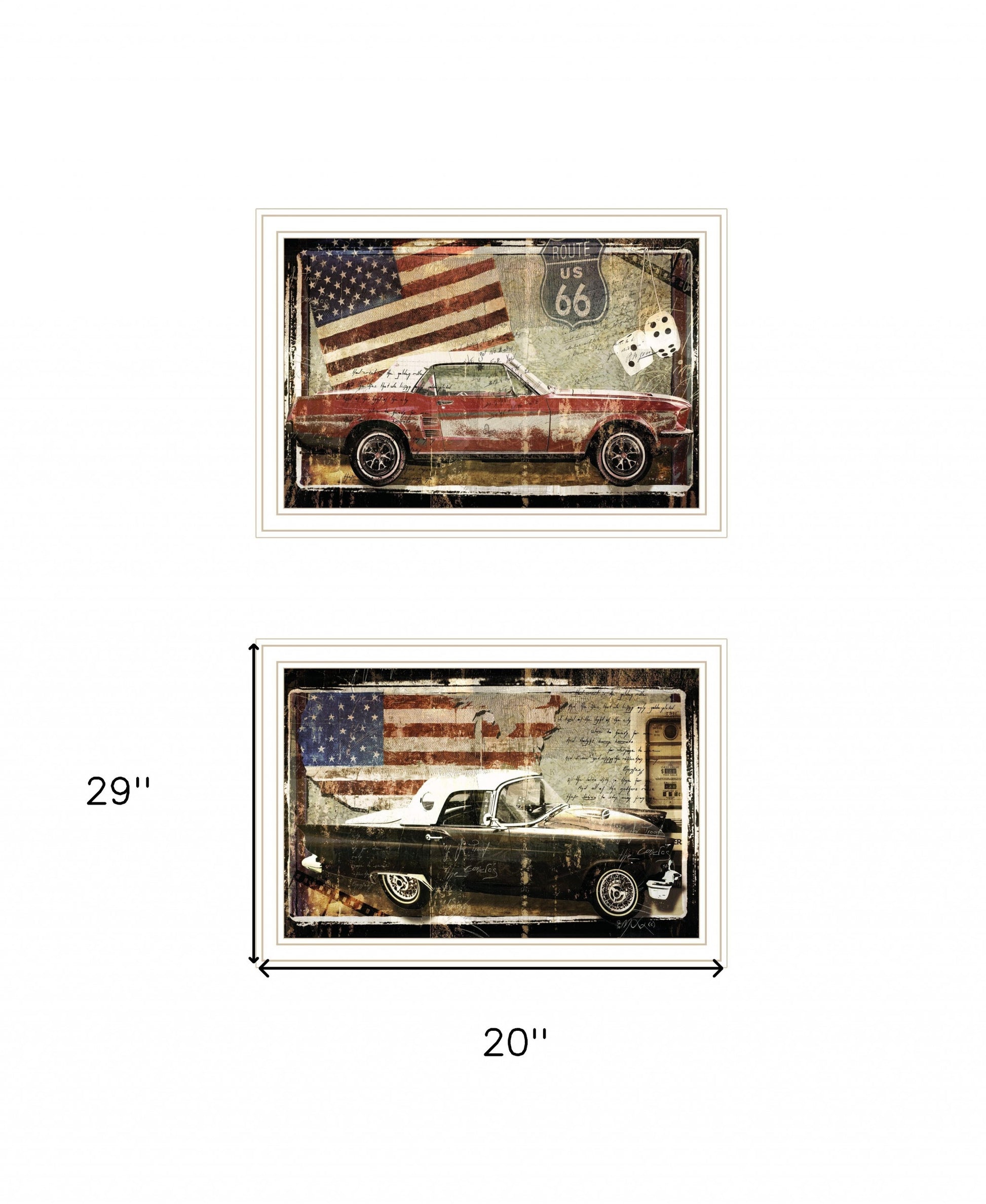 Bring some sizzle to your space with this eye-catching set of two vintage classics 2 white framed print wall art. This transportation inspired wall art features a car/van icon and will bring a refreshing look and perspective to your walls. This print is a visual artistic expression that allows you to decorate your space in style. Reproduced for you on wood, this hanging decorative accent will be a trendy and fashionable way to dress your walls in a rustic and modern farmhouse vibe. Adding this hanging wall art to your space to make your room feel more finished and attractive. Utilize this opportunity to create a focal point in the room with this fabulous wall decor option. 29 inches H x 20 inches W x 1 inches D