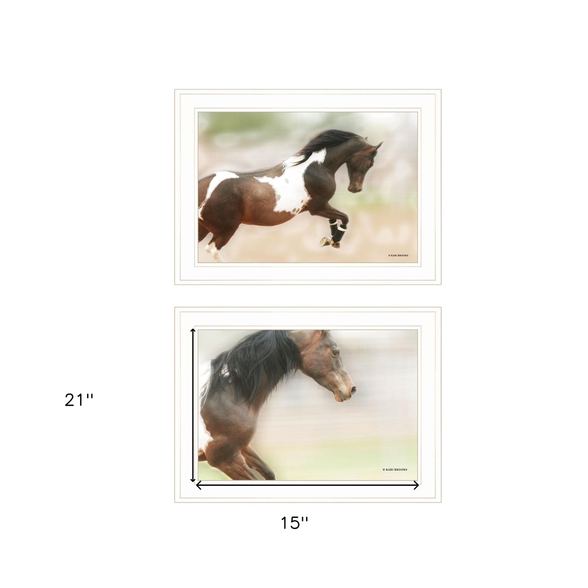 Unique and decorative, this set of two wild horses white framed print wall art will leave a lasting impression. Bring a little bit of the farm indoors when you hang this horse artwork. This print is a visual artistic expression that allows you to decorate your space in style. Reproduced for you on paper, this hanging decorative accent will be a trendy and fashionable way to dress your walls. Adding this hanging wall art to your space to make your room feel more finished and attractive. Instantly liven up your space with this art that brings color and dimension to your walls. 15 inches H x 21 inches W x 1 inches D