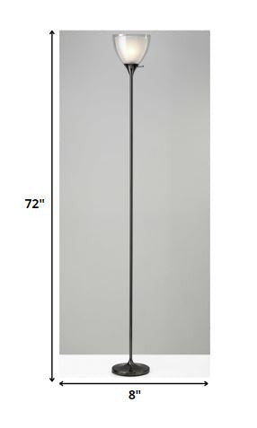 Shiny Black Nickel Finish Metal Torchiere Floor Lamp With Frosted Inner Shade