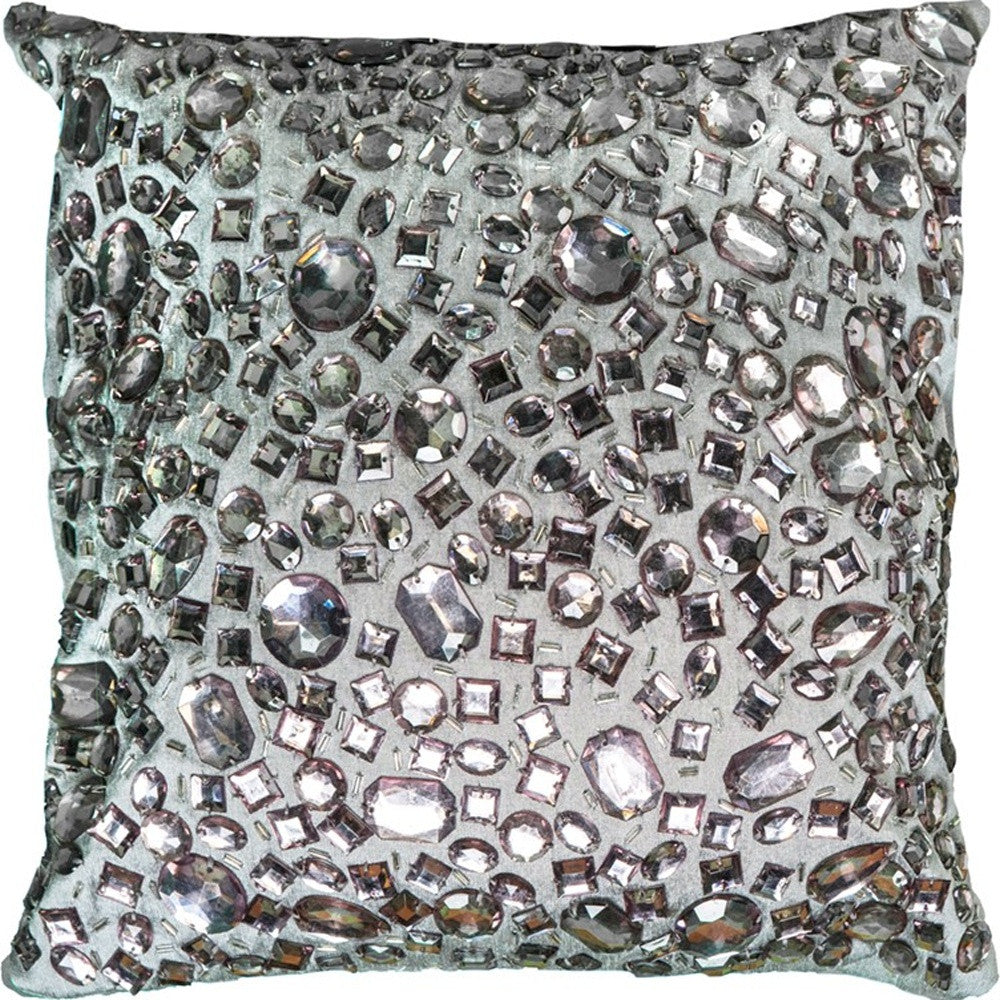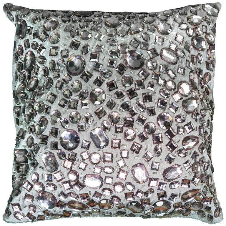 Give your modern living space an eye-catching centerpiece with this Sparkly Glam Faux Crystal Jewels Beading throw Pillow that will set a glamorous tone to your interior décor. Brimming with hand-applied crystal beads in eclectic shapes and sizes over a silver-gray base, creating complex refraction of light to allure the gaze of the guests. The subtle sheen of the solid gray back adds to a plush appearance while the hidden zipper closure ensures a seamless finish, making the pillow easy to clean. Not to mention, the knife edging accentuates a clean and polished look to give the pillow a sophisticated modern look. The alluring jewel beads and dazzling beauty of this decorative throw pillow will add a touch of glam to your living room and be an ideal companion to neutral-toned decors. 12” x 12” x 6.25”
