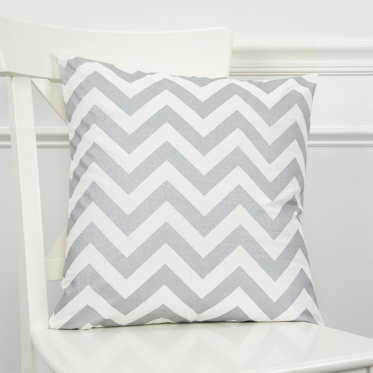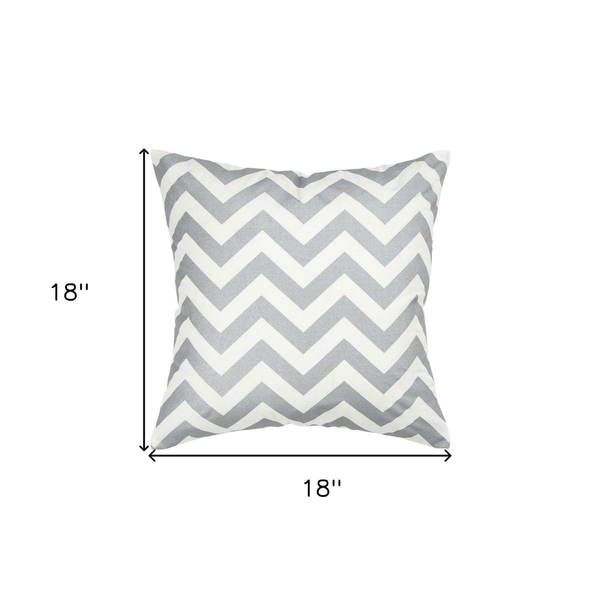 Perfectly balanced in shades and simplicity, this Silver Ivory Chevron Patterned Throw Pillow is here to add pops of color to your living room without compromising modern sophistication. The classic chevron pattern in shiny silver and ivory is bound to draw the eyes and be the centerpiece in the room. Standing out with its soft cotton construction, the pillow features a smooth surface texture and is down-filled to ensure an airy-soft and fluffy nature that will make you feel like lying on a bed of cotton candy. The pillow has solid matching cotton back with a hidden zipper closure for hassle-free cleaning while the knife edge emphasizes a clean style with its sharp and clean corners allowing this piece to fit well amidst a range of interior themes and decors. If you want to give the neutrals of your interior an elegant modern update, this chevron printed throw pillow is the perfect pick for you! 18” x 18” x 6.25”