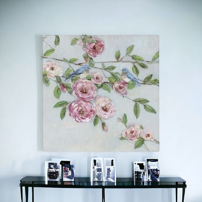 This small pretty pink blooms canvas wall art will add a beautiful decorative accent to your decor. This print is a visual artistic expression that allows you to decorate your space in style. Reproduced for you on canvas, this hanging decorative accent will be a trendy and fashionable way to dress your walls. Adding this hanging wall art to your space to make your room feel more finished and attractive. Instantly liven up your space with this art that brings color and dimension to your walls. 30 inches H x 30 inches W x 1.25 inches D
