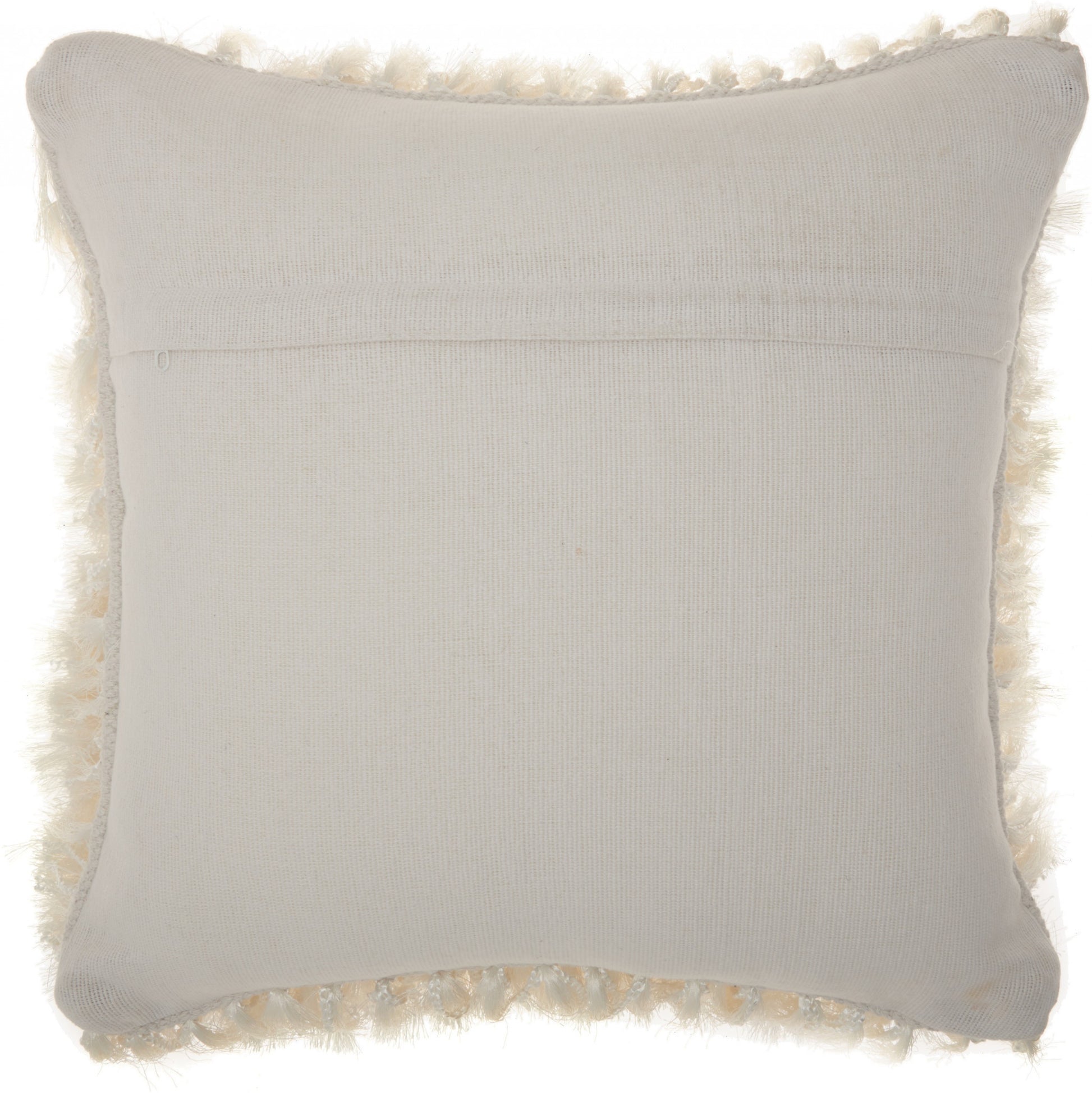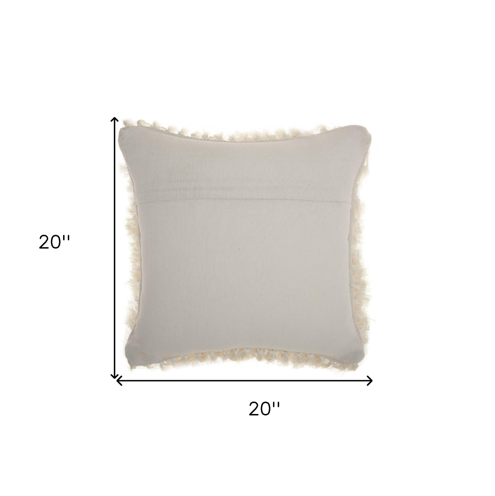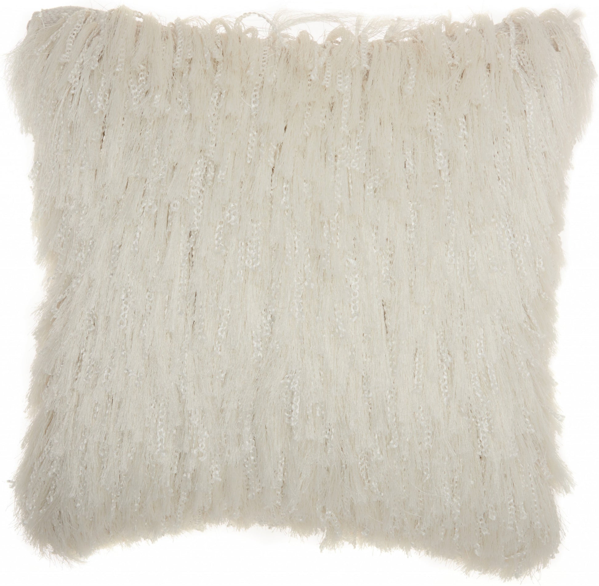 Enjoy all that comfort has to offer with this Soft White Shag Accent Pillow. The 65% Polyester, 35% Cotton makes for a great comfort piece. The shag fabrication gives a soft and calming exterior, adding texture to your home, whilst the hand-knotted braided yarn and thin yarns give a great texture. The clean white color is the perfect hue to easily style and mix and match with your other decor pieces and pillows. 6" x 20" x 20"