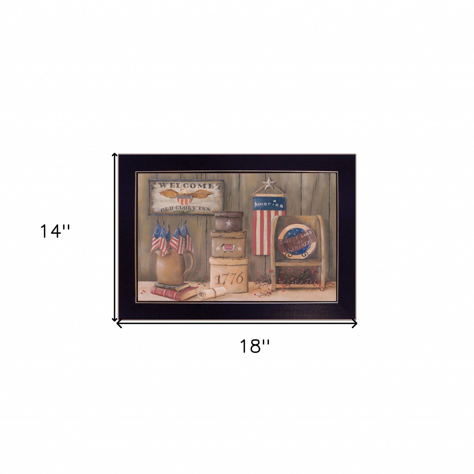 This sweet land of liberty 1 black framed print wall art will add a beautiful decorative accent to your decor. This print is a visual artistic expression that allows you to decorate your space in style. Reproduced for you on paper, this hanging decorative accent will be a trendy and fashionable way to dress your walls. Adding this hanging wall art to your space to make your room feel more finished and attractive. Instantly liven up your space with this art that brings color and dimension to your walls. 14 inches H x 18 inches W x 1 inches D