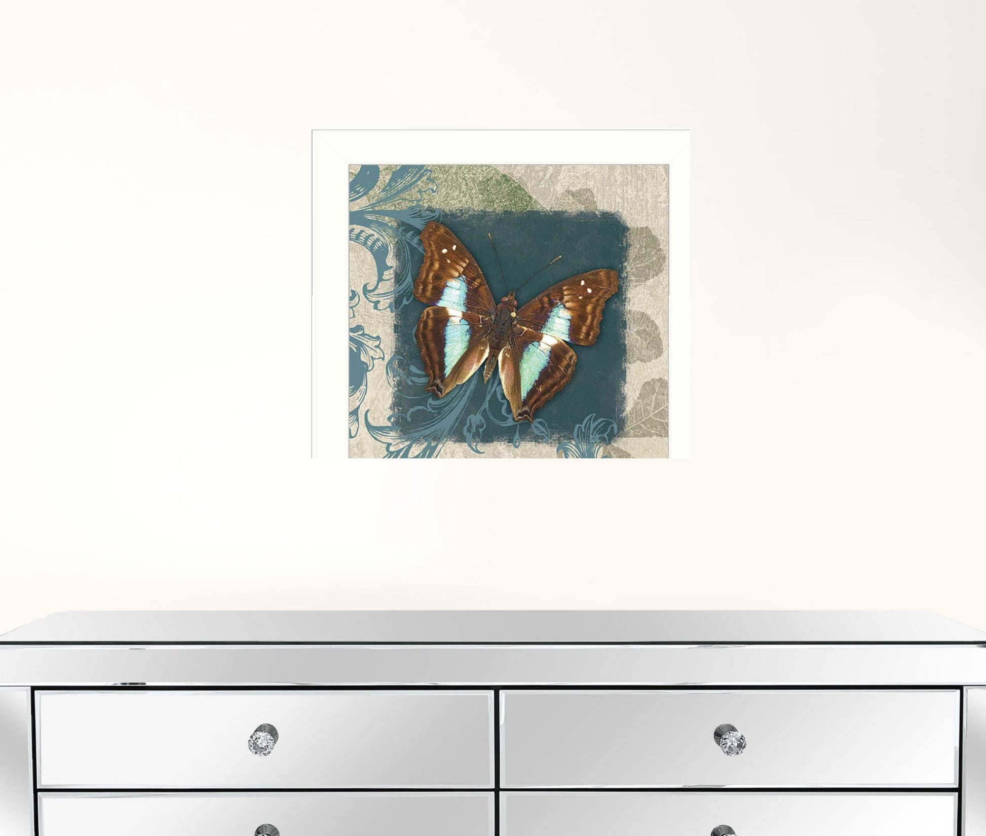 This swirl butterfly white framed print wall art will add a beautiful decorative accent to your decor. Inspired by one of nature's most revered icons, this pretty butterfly inspired artwork will be a beautiful and special addition to your room's decor. This print is a visual artistic expression that allows you to decorate your space in style. Reproduced for you on paper, this hanging decorative accent will be a trendy and fashionable way to dress your walls. Adding this hanging wall art to your space to make your room feel more finished and attractive. Instantly liven up your space with this art that brings color and dimension to your walls. 14 inches H x 14 inches W x 1 inches D