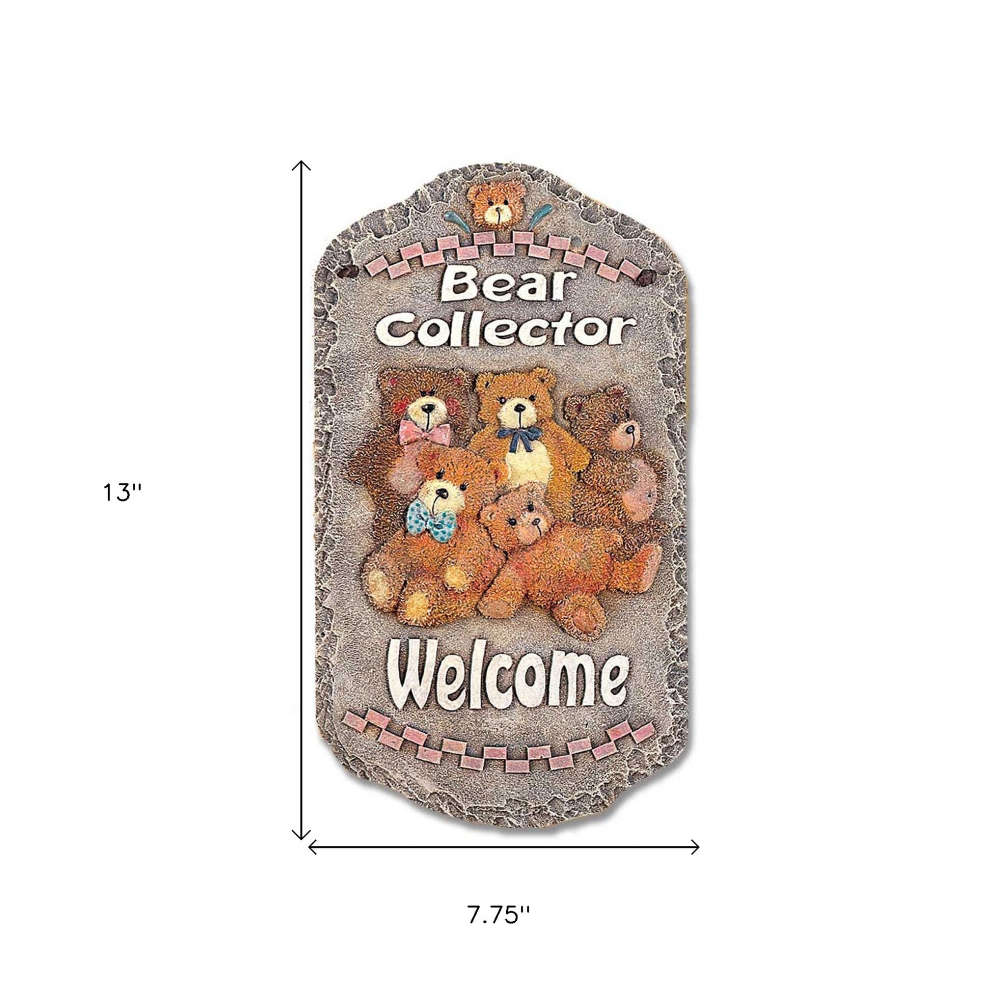 This Teddy Bear Collector Indoor Outdoor Resin Welcome Sign comes ready to hang and will be a greet way to great friends and family as the approach your home. The adorable design features beloved teddies. Made of sturdy polyresin this plaque can be used either indoors or outdoors. 13" x 7.75" x 1"