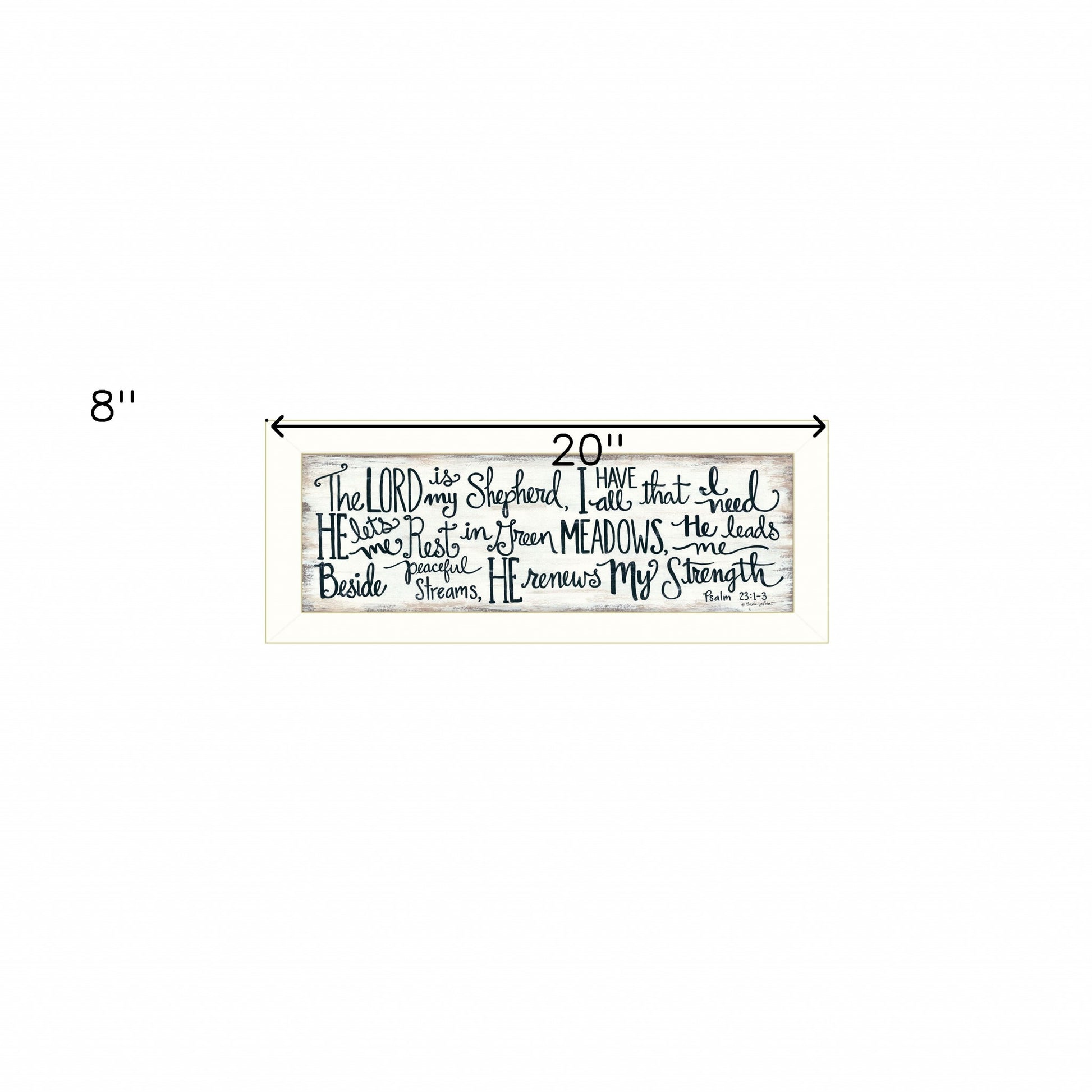 The the lord is my shepherd 2 white framed print wall art is the perfect decorative accessory for your home. This print is a visual artistic expression that allows you to decorate your space in style. Reproduced for you on paper, this hanging decorative accent will be a trendy and fashionable way to dress your walls. Adding this hanging wall art to your space to make your room feel more finished and attractive. Instantly liven up your space with this art that brings color and dimension to your walls. 8 inches H x 20 inches W x 1 inches D