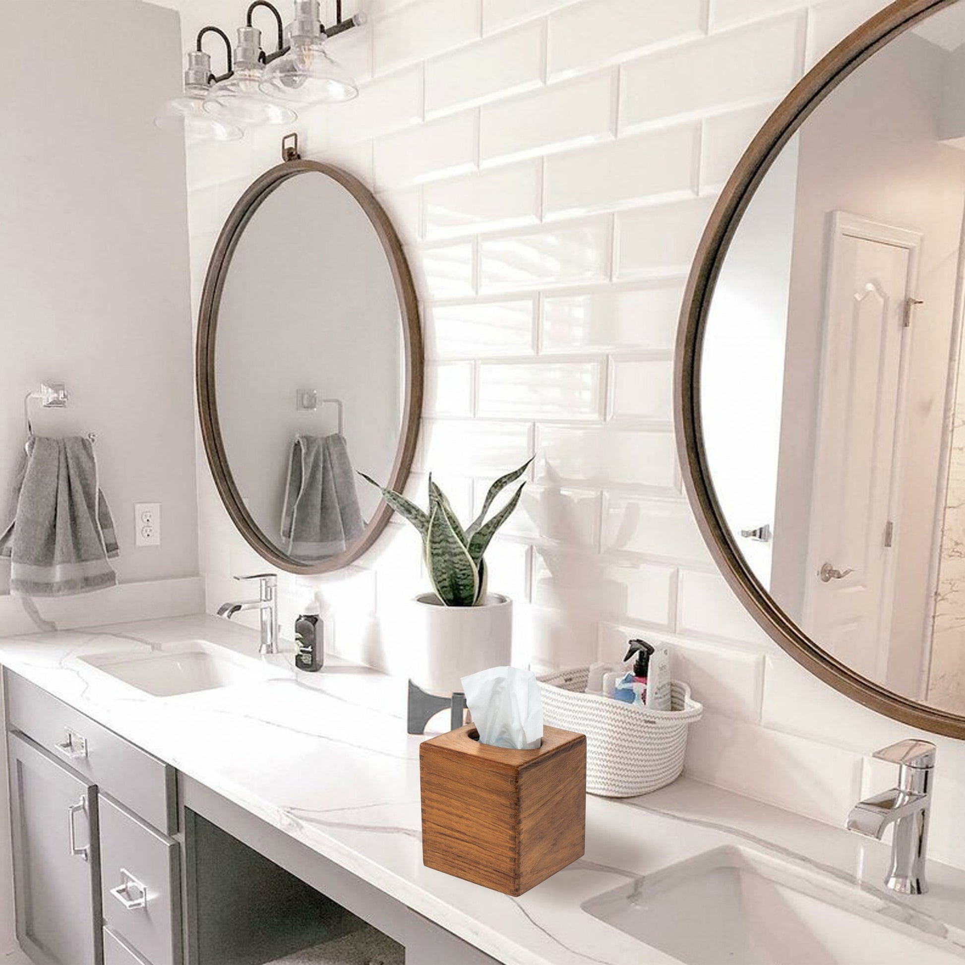If you are looking for a way to cover up those unsightly cardboard tissue boxes, this Traditional Solid Teak Square Tissue Box Cover is the one for you. Made from quality teak, this durable wood is a favorite of designers, hotels, and homeowners because of its natural water, mold, and mildew resistant properties. Featuring dovetail joint construction and finished in a classic warm maple teak finish, this handcrafted tissue box cover will upgrade your space in handsome style. 5.6" x 5.3" x 5.3".